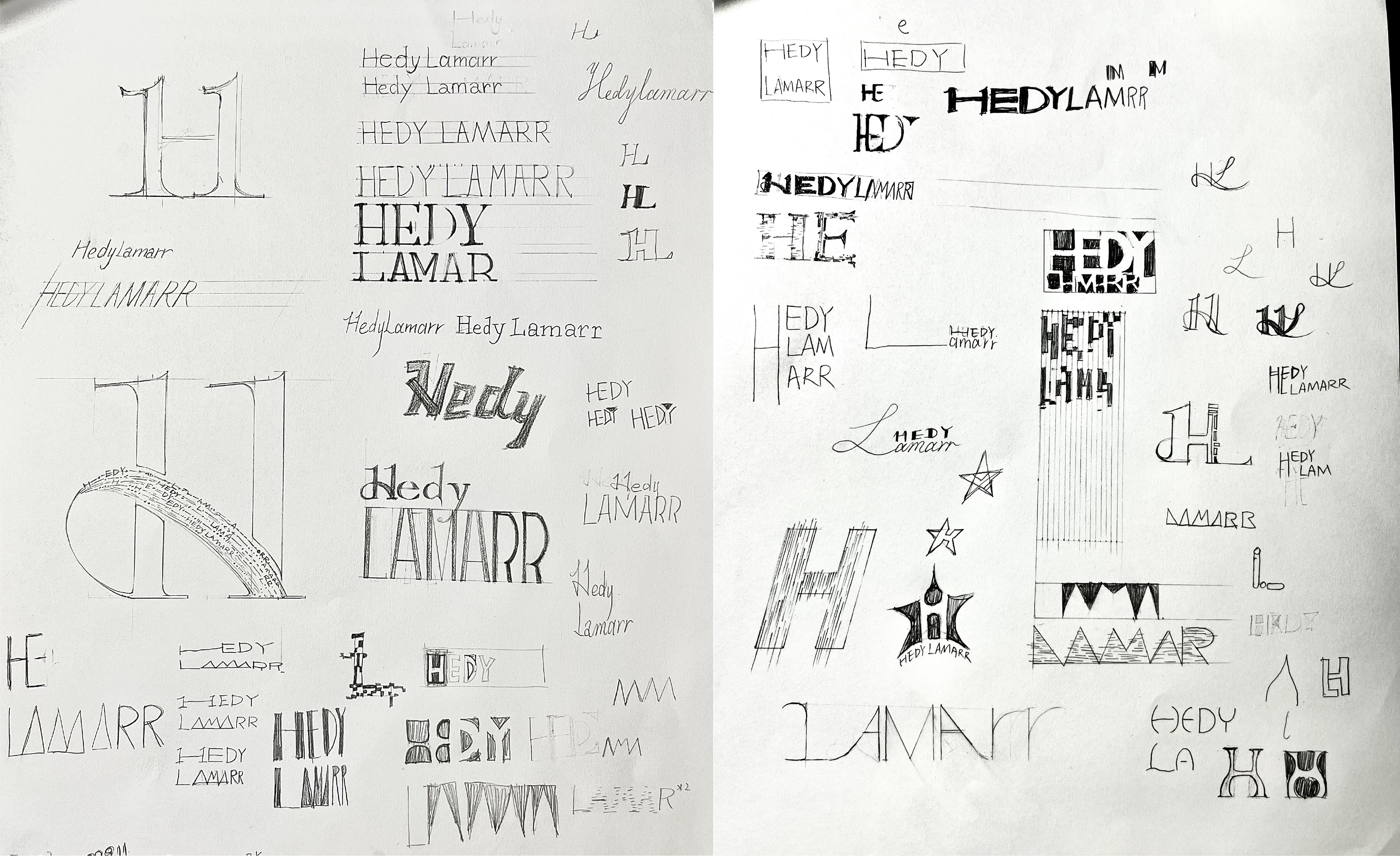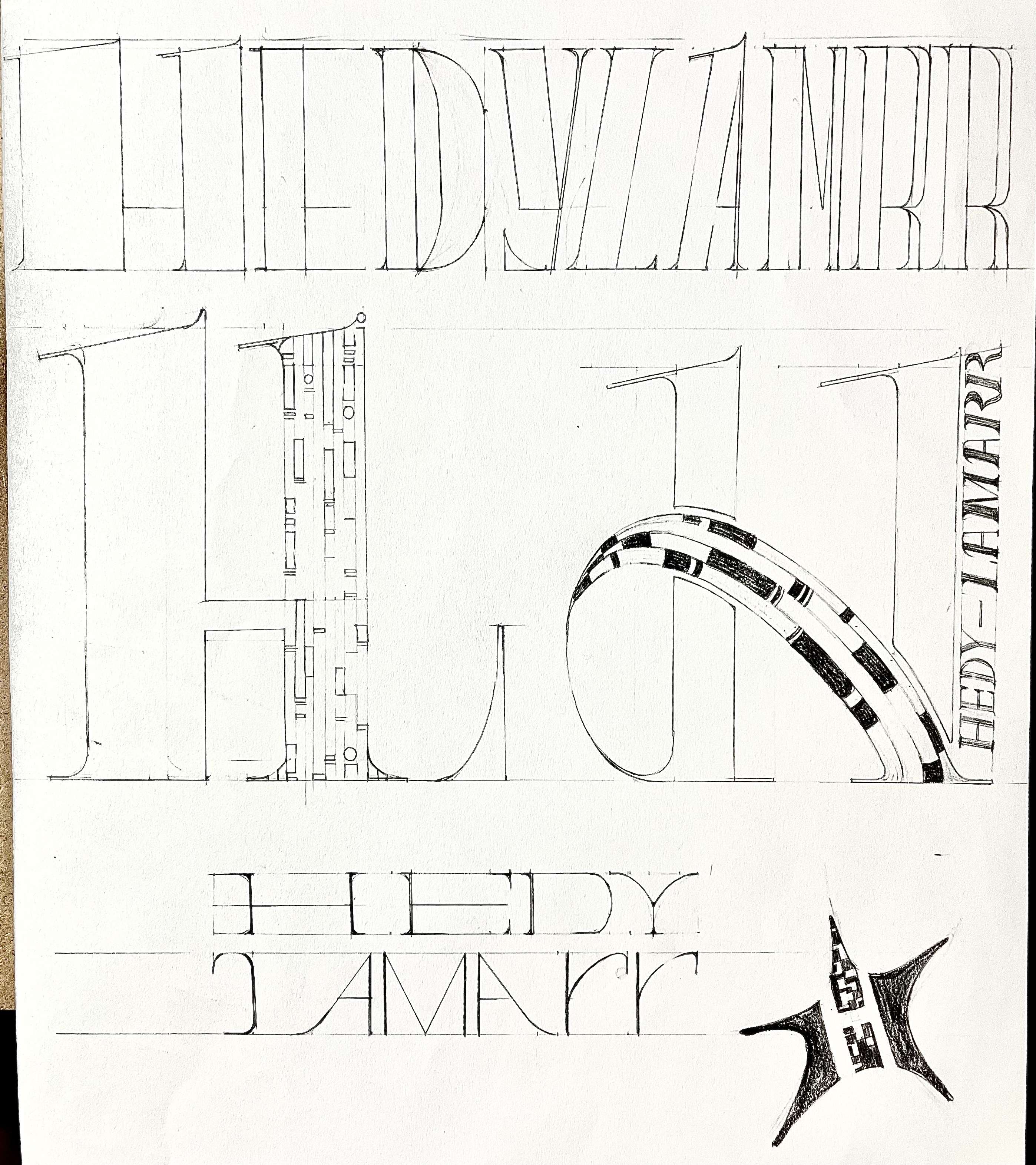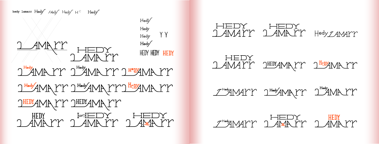 Process. This picture shows how I try to figure out the spacing and form between each words. From symmetrical structure to asymmetry, From a big "HEDY" to small lower case "Hedy"...I struggled a lot.