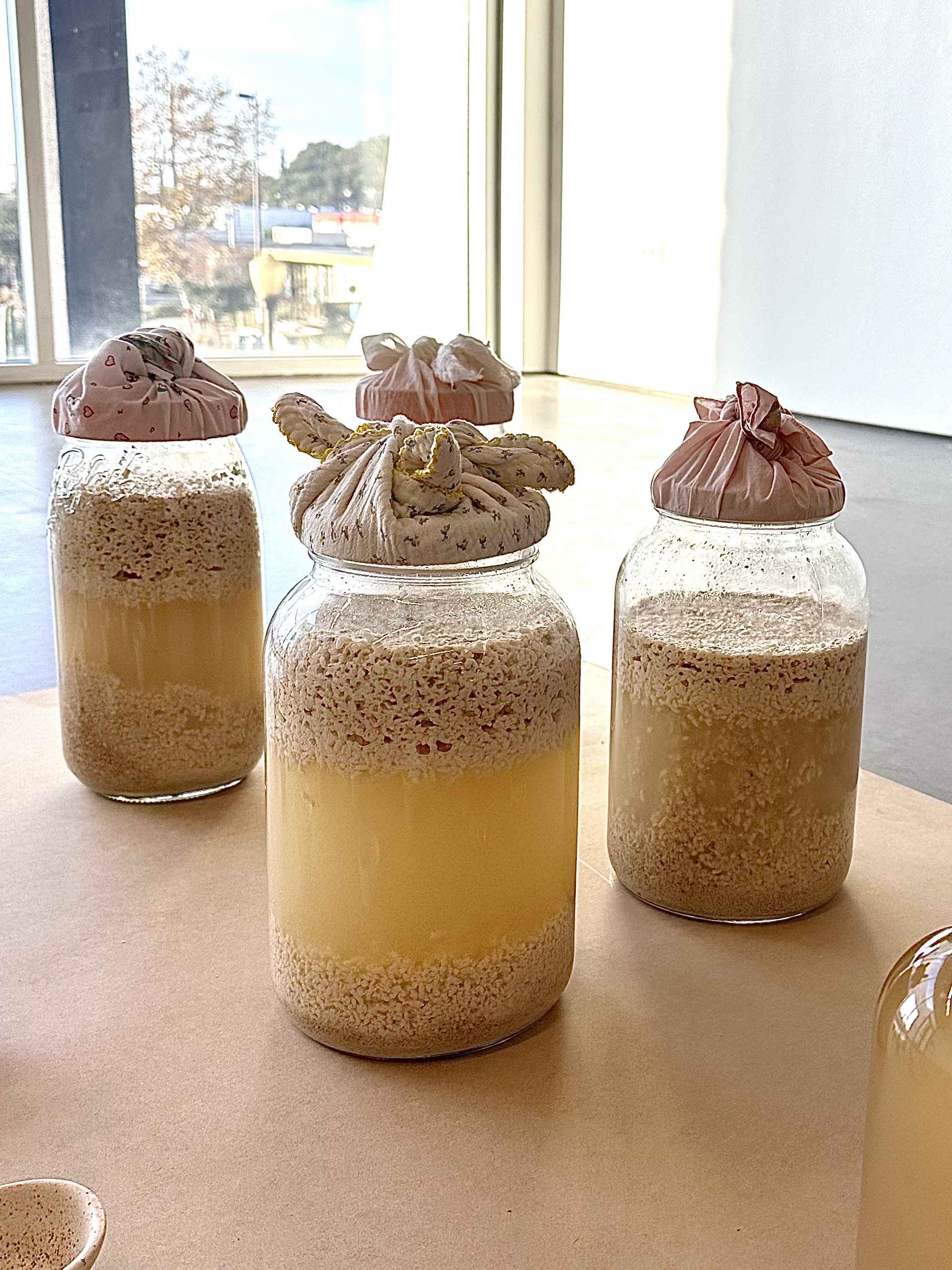 polyacitic acid, ceramics, rice, yeast, glass jars