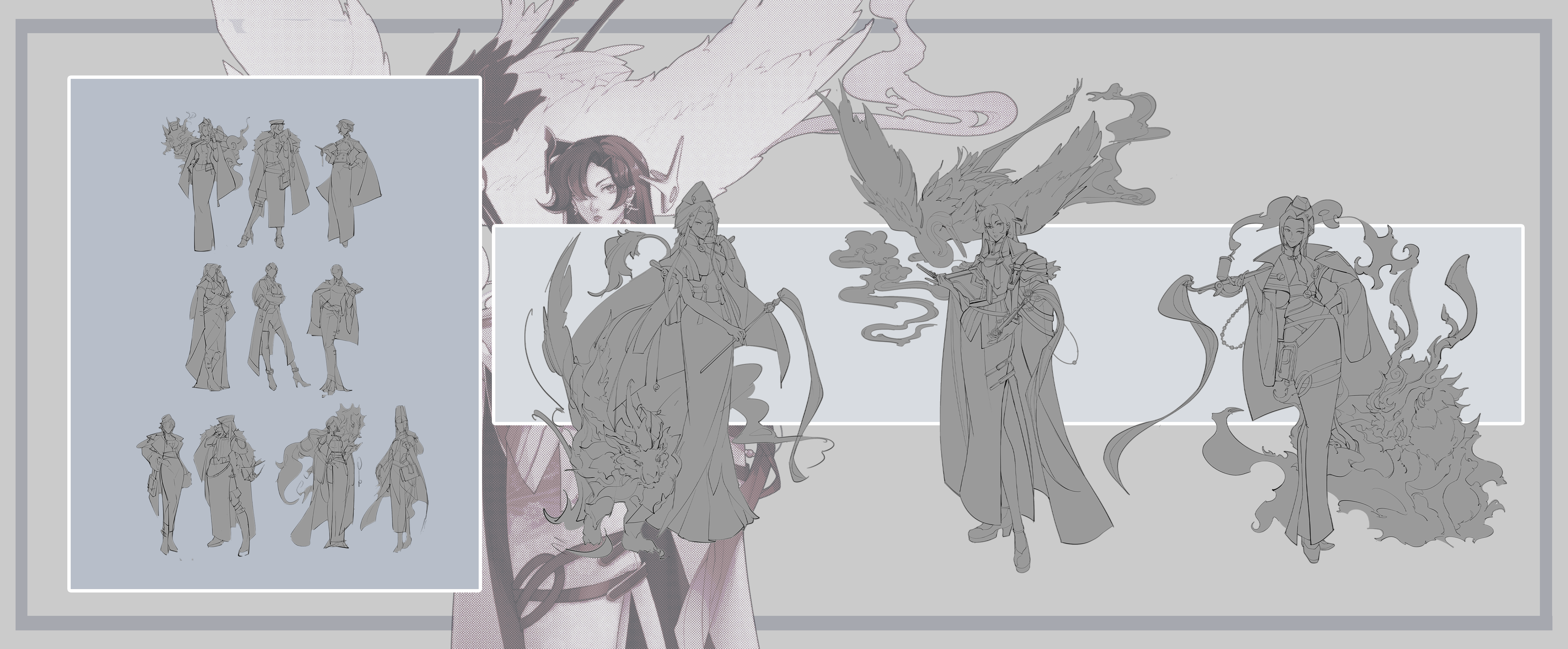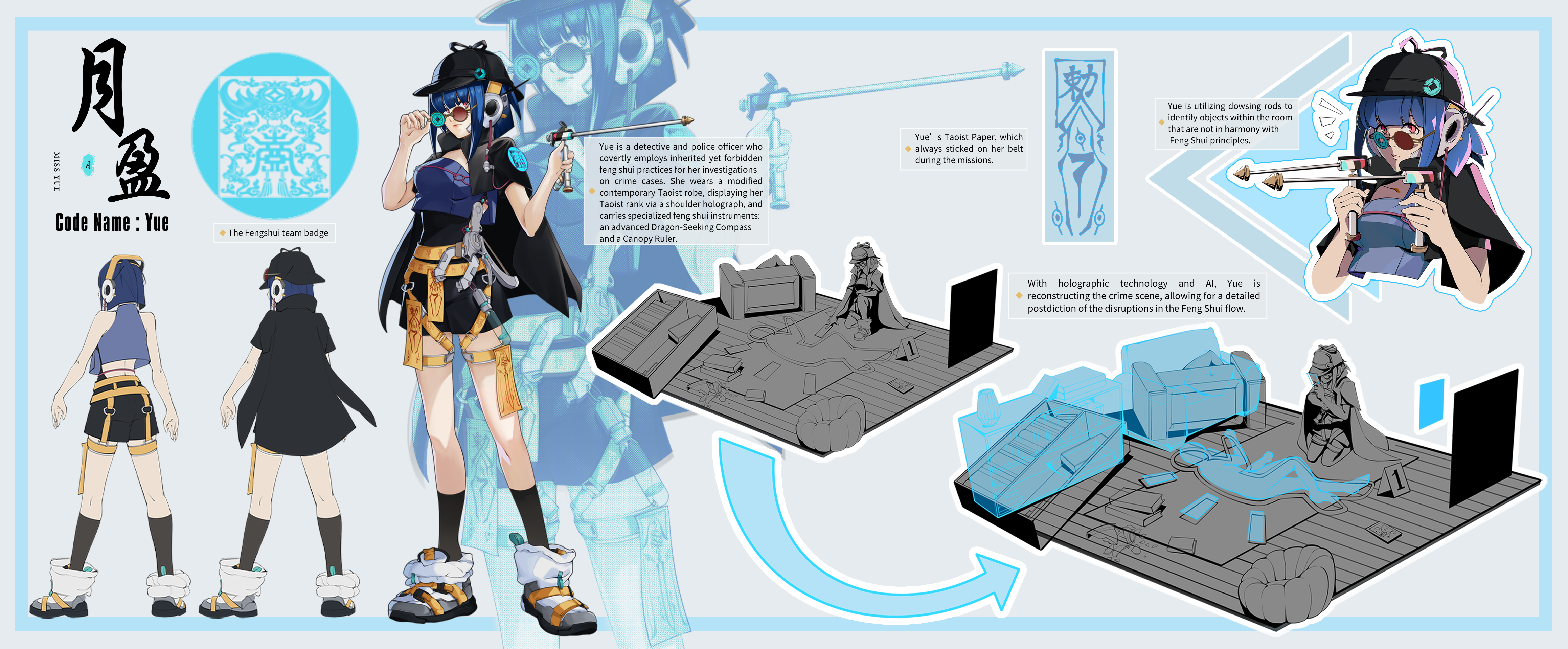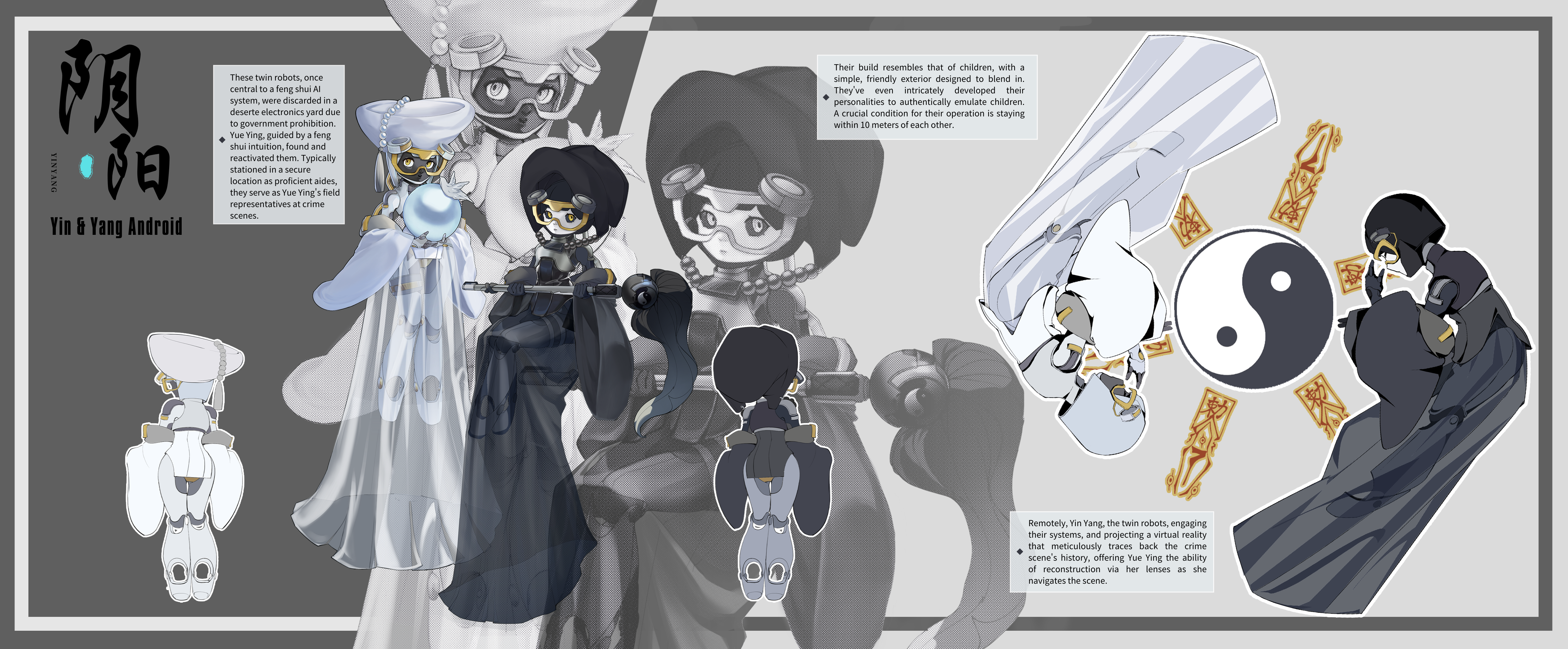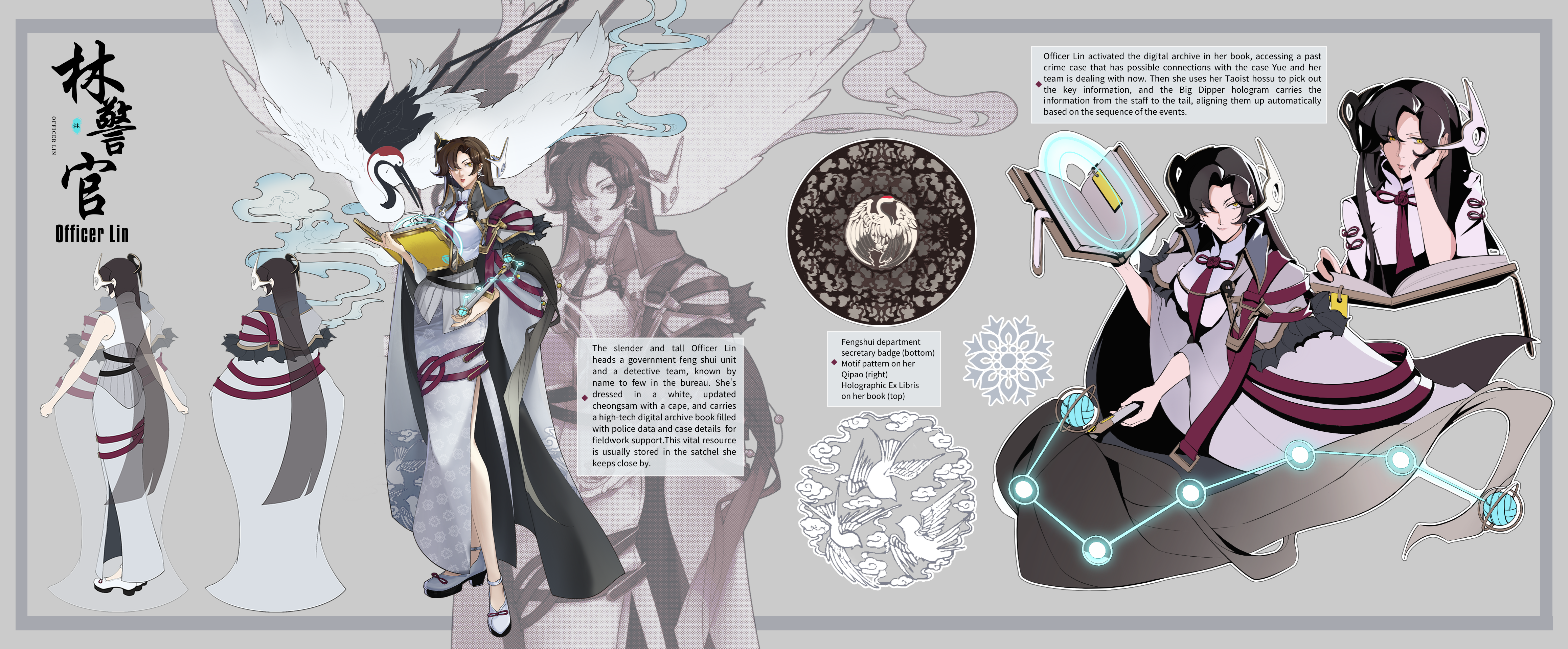 Character design concept completed as my personal project during summer 2023. This is one furthur take of a previous story concept which was my school work. The story taken place in a world where the traditional art of Feng Shui is combined with the usage of super AI to make predictions, where the technology is later banned by the government amid worries of religional and societal upheavals it possibly brings.