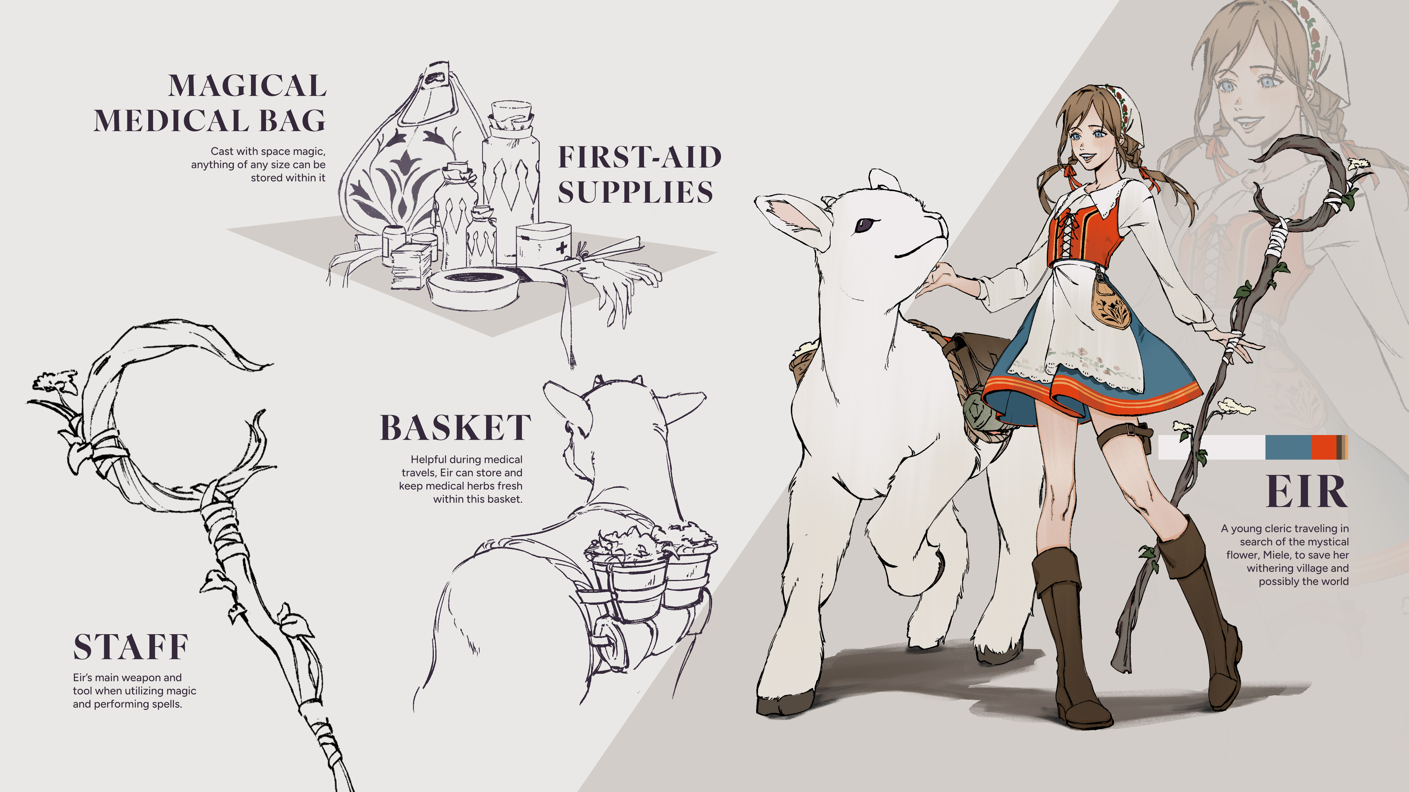 Project in progress - see yunaillust.com for updates. The life of young cleric Eir takes a turn upon the appearance of a mysterious life-threatening disease that slowly withers down her village. This story follows three heroes who take it upon themselves to find the magical healing flower, Miele, as they track down the root of it all—a mana and life-sucking beast.