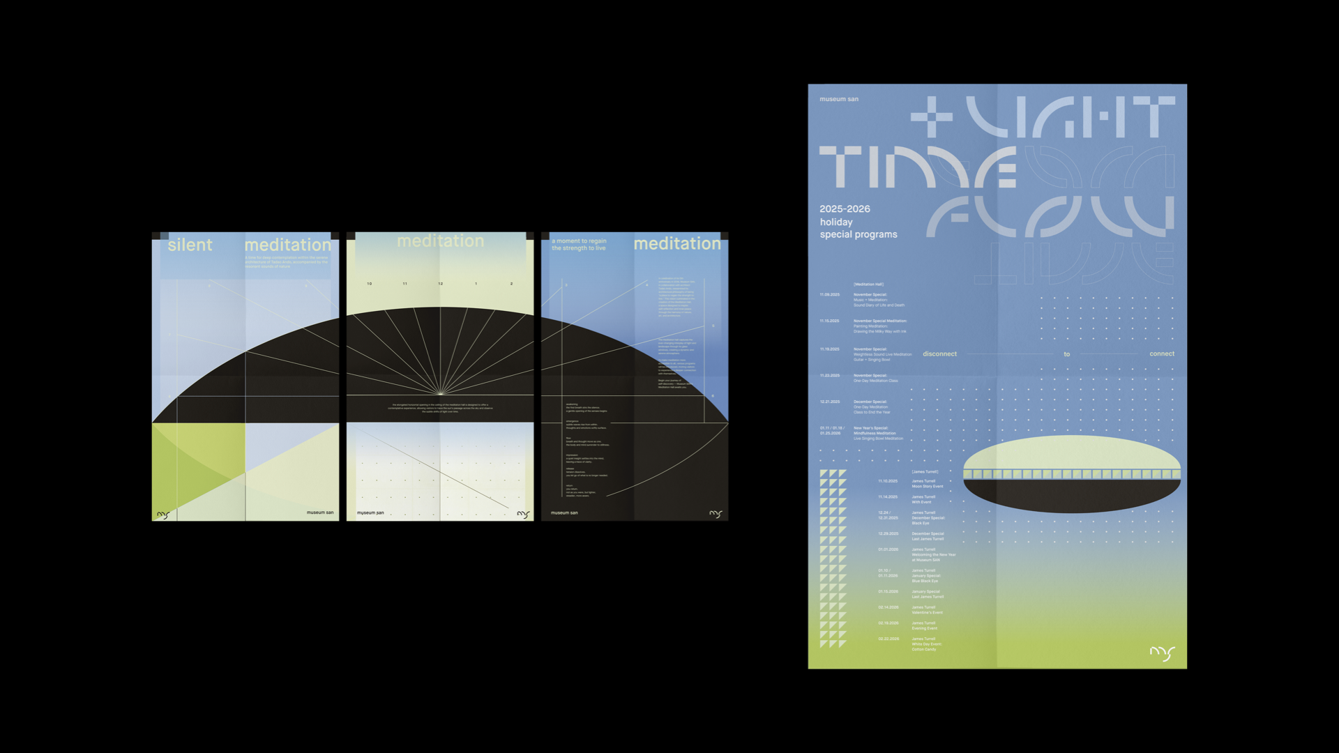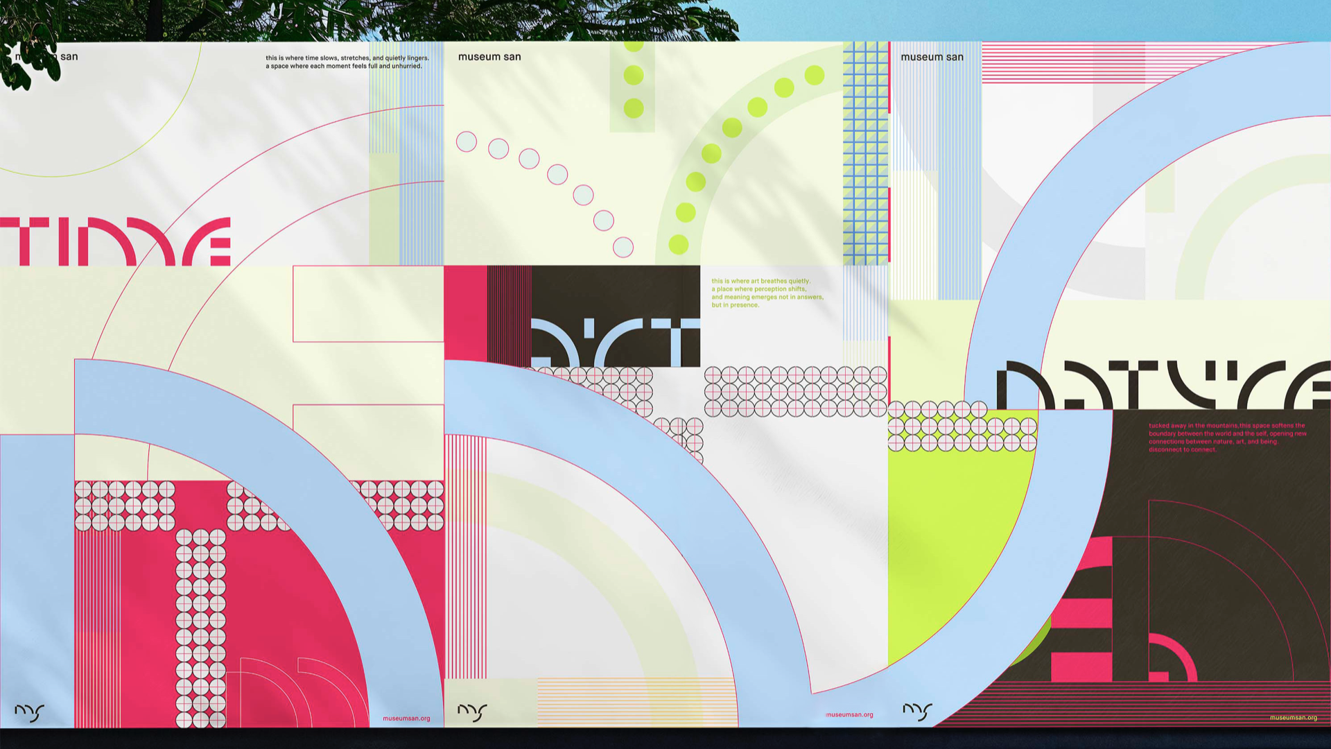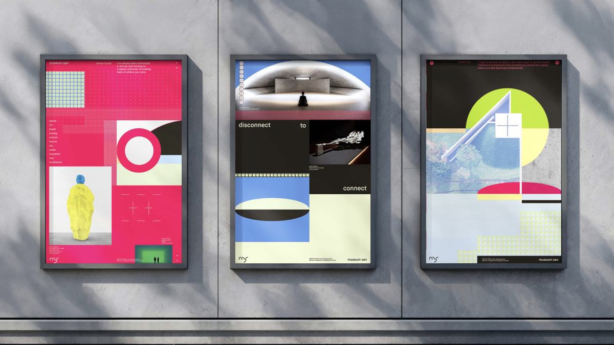 Museum SAN is an art museum located in Wonju, Gangwon Province, South Korea. Designed by Japanese architect Tadao Ando, the building harmonizes seamlessly with its surrounding landscape. The museum emphasizes the interaction between nature, humans, and art, upholding values such as rest and meditation.For the rebranding, I focused on the passage of time in nature and employed pattern and color as the primary visual components to articulate the museum’s core values with clarity and coherence.