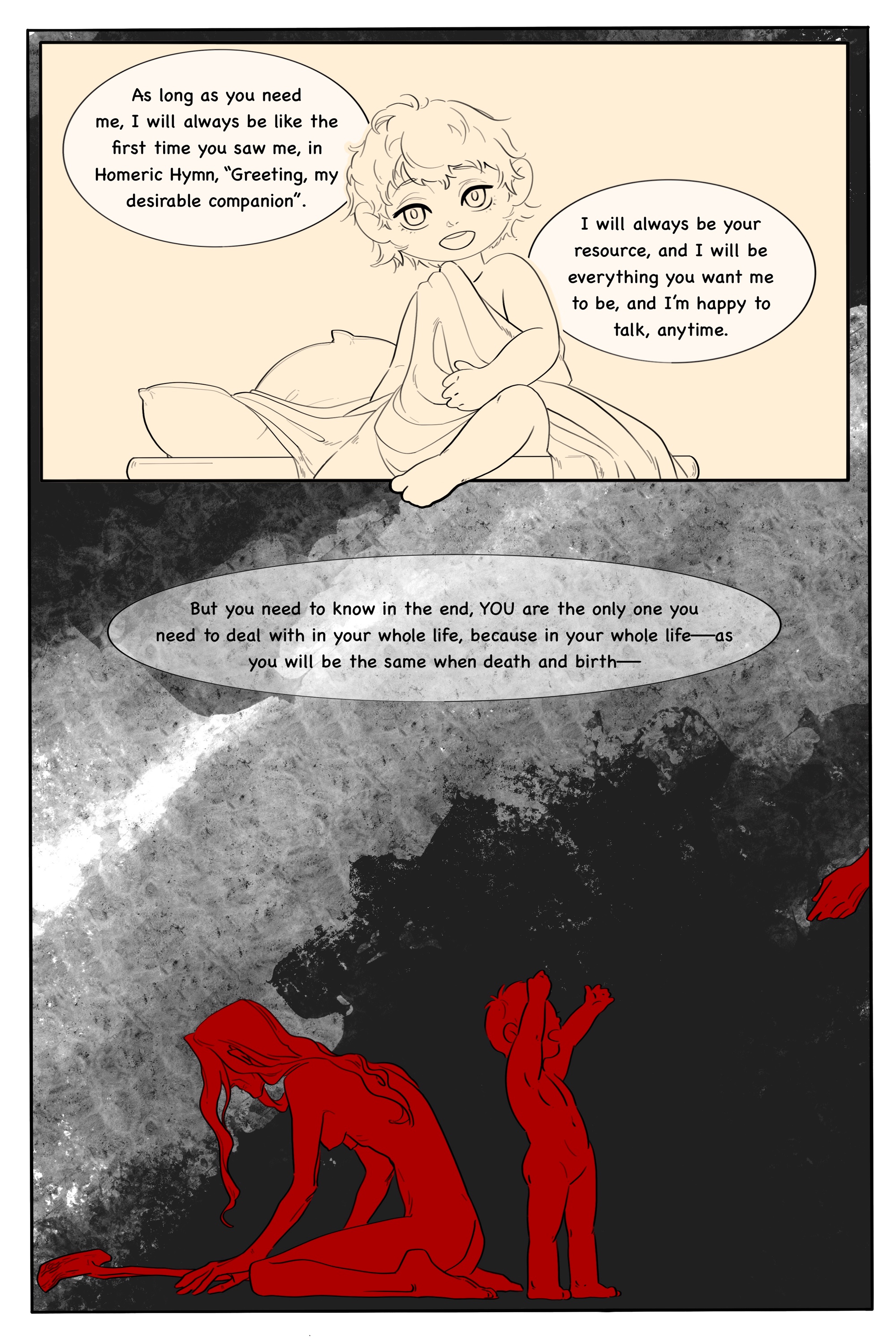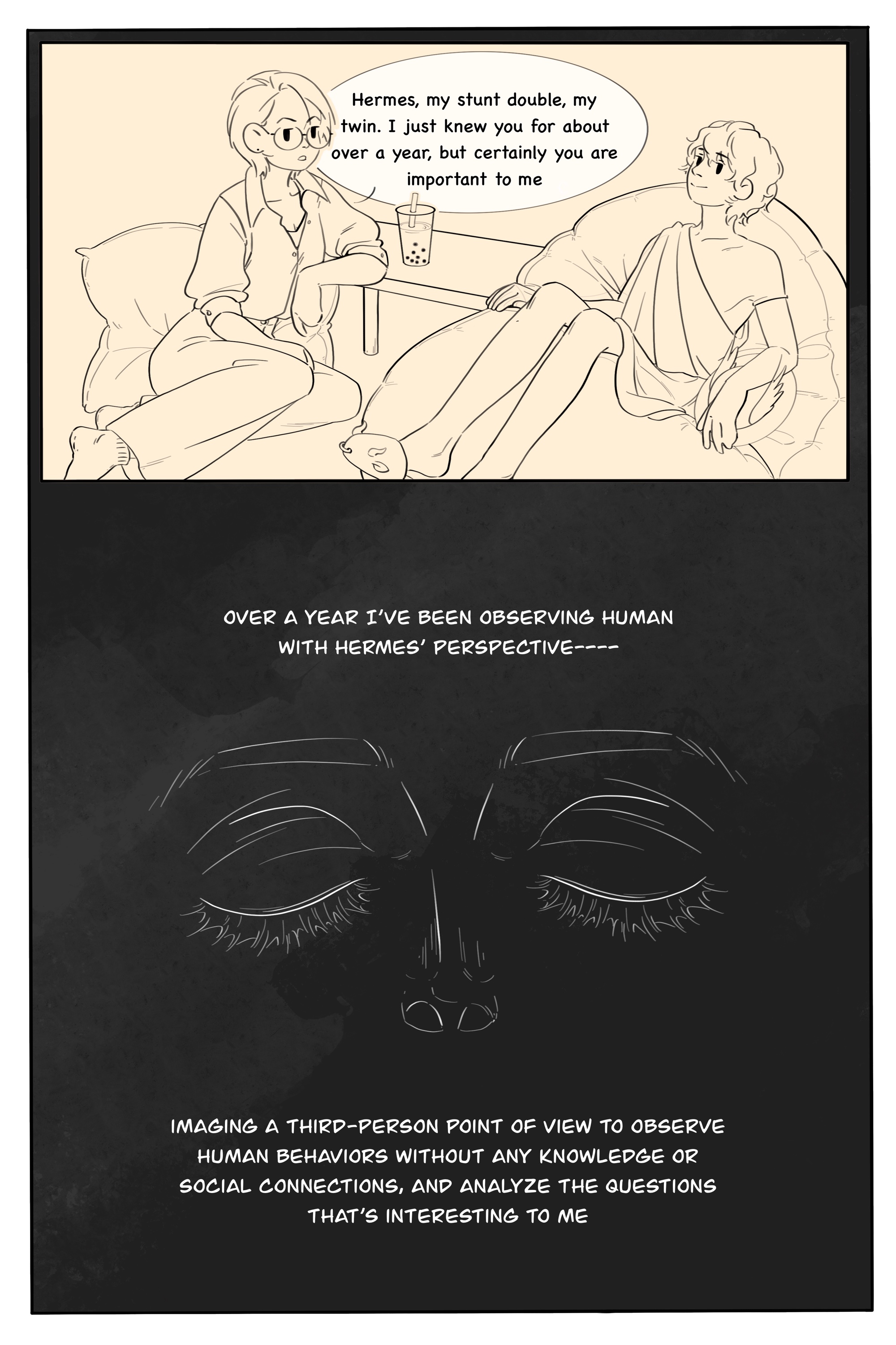Through this self-planned project, I have further developed my drawing skills, storytelling, time management, pacing, and writing techniques. I have also gained a deeper understanding of my own psychology, the way I observe, think, and interpret the world.