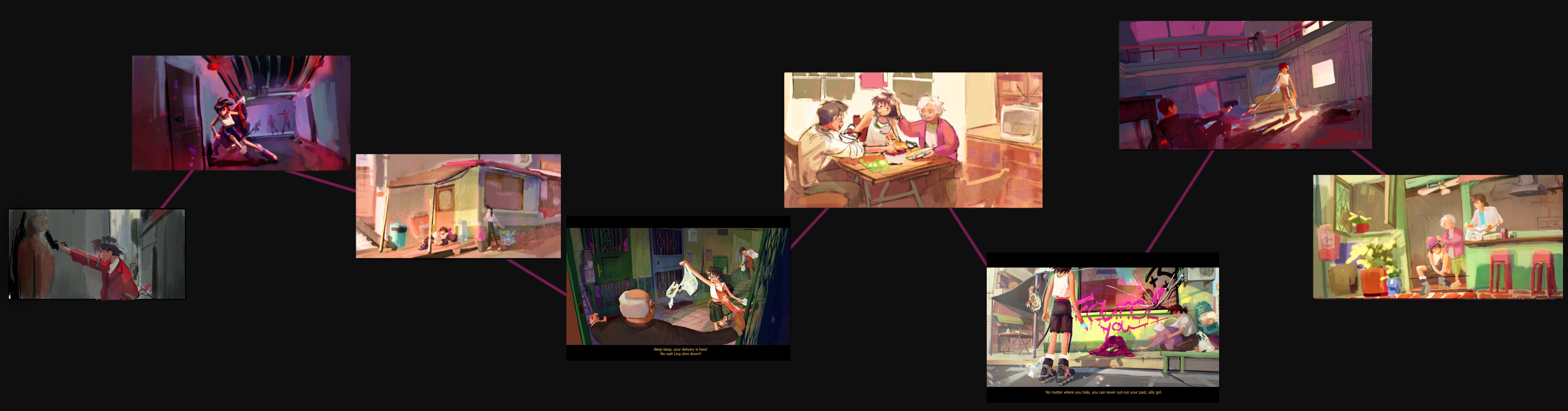 Visual Development project of an ex-assassin girl, Ling, on the run from her organization. Set in 1980's Hong Kong, the dark alleys is deeper than one can imagine. After she finally finds her place and found-family, her past catches up to her; how can she protect what is truly important to her?