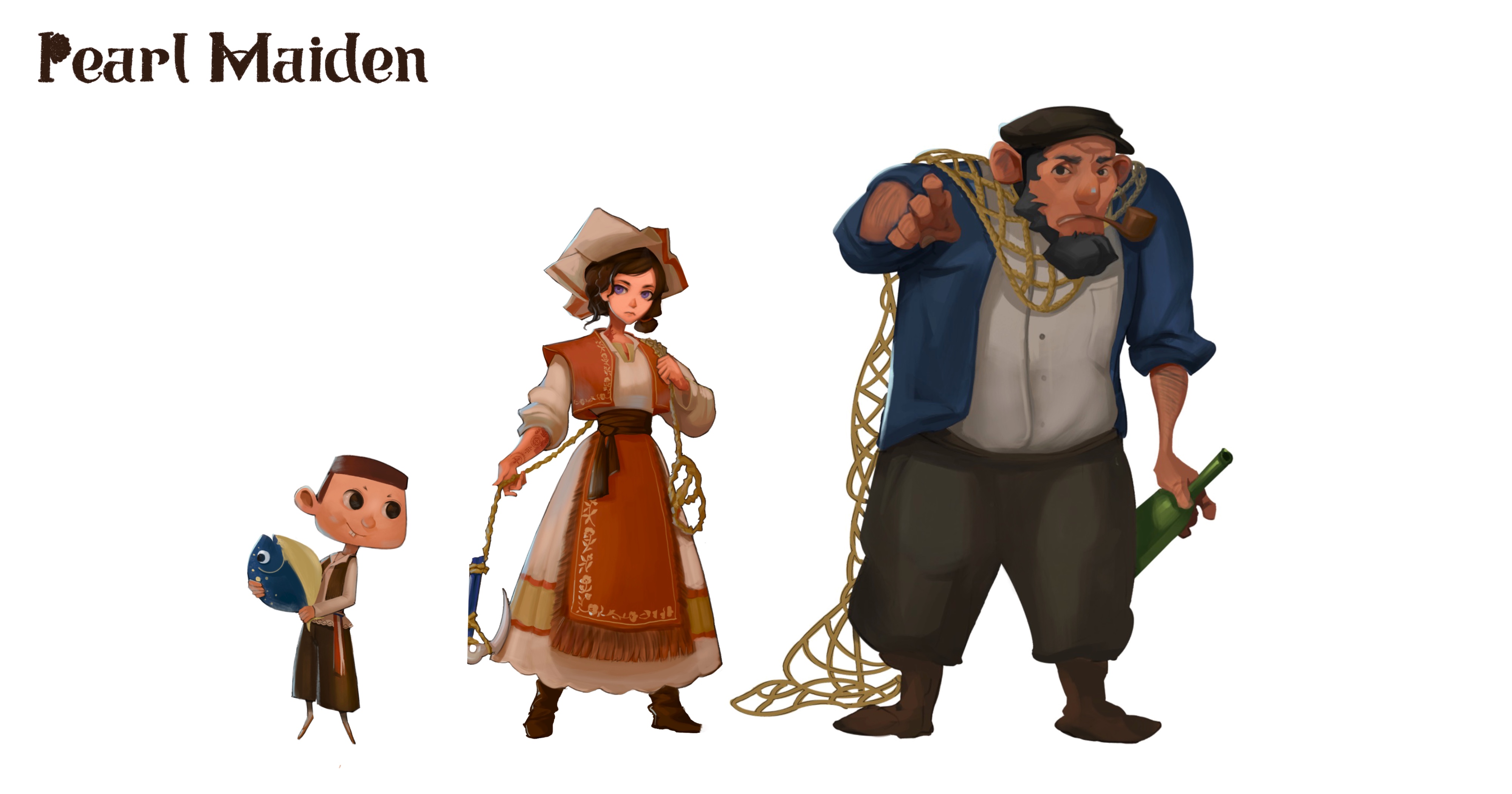 "Pearl Maiden" is a collaborative visual development project where I designed props, characters, and environments. The story follows the adventurous journey of a fisherman's family beneath the ocean. Groupmates: Yilin She, Qinyun Song