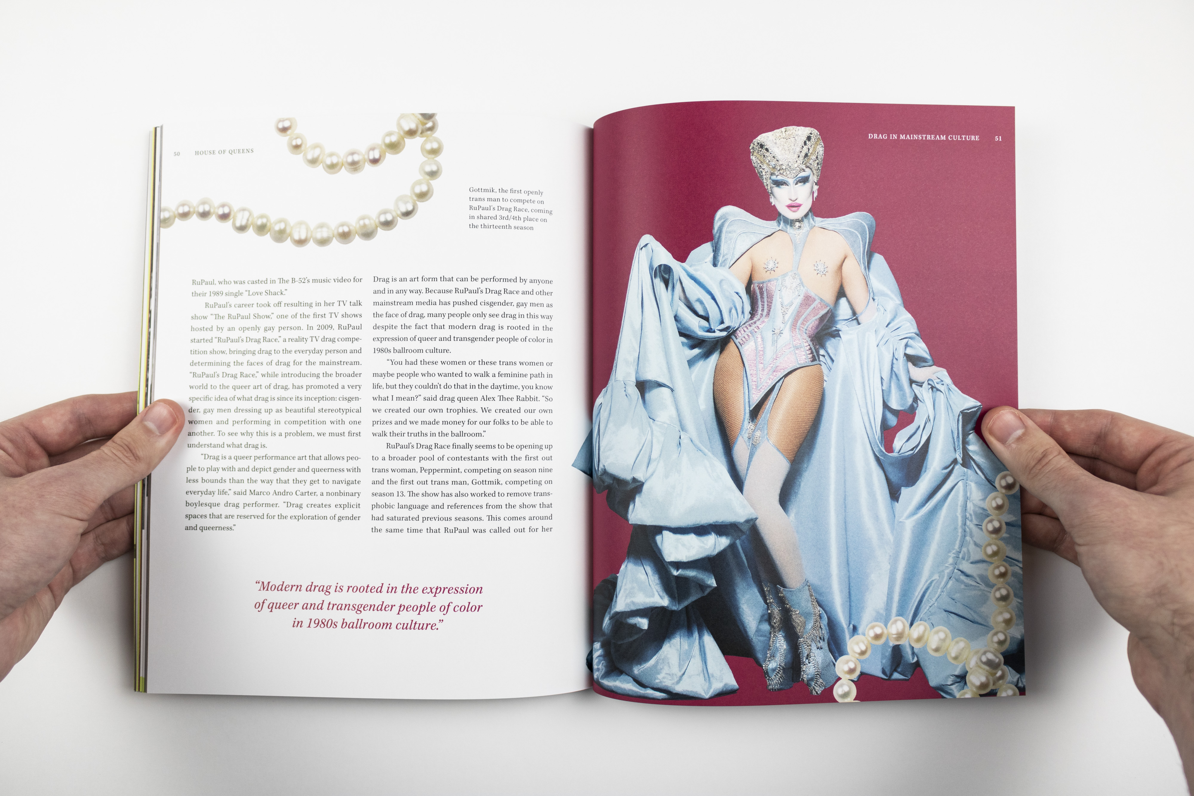 House of Queens is a book that celebrates the art of drag. It spotlights its history and development and shines light on the queer people of color who paved the way for modern day drag in the New York Ballroom scene. While modern day drag faces criticism and has become a political controversy, it is important to learn how drag queens have created safe spaces for queer communities for many decades.