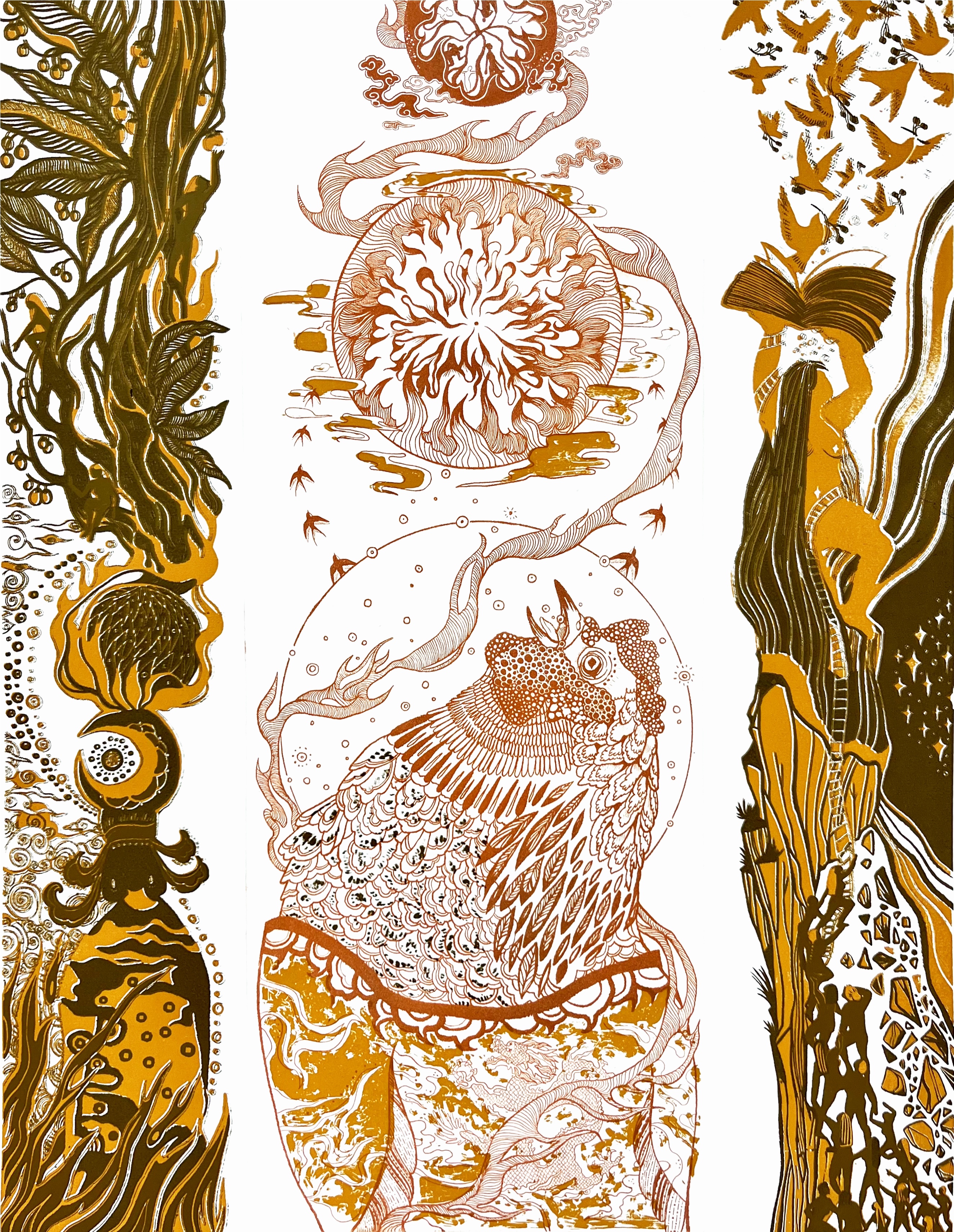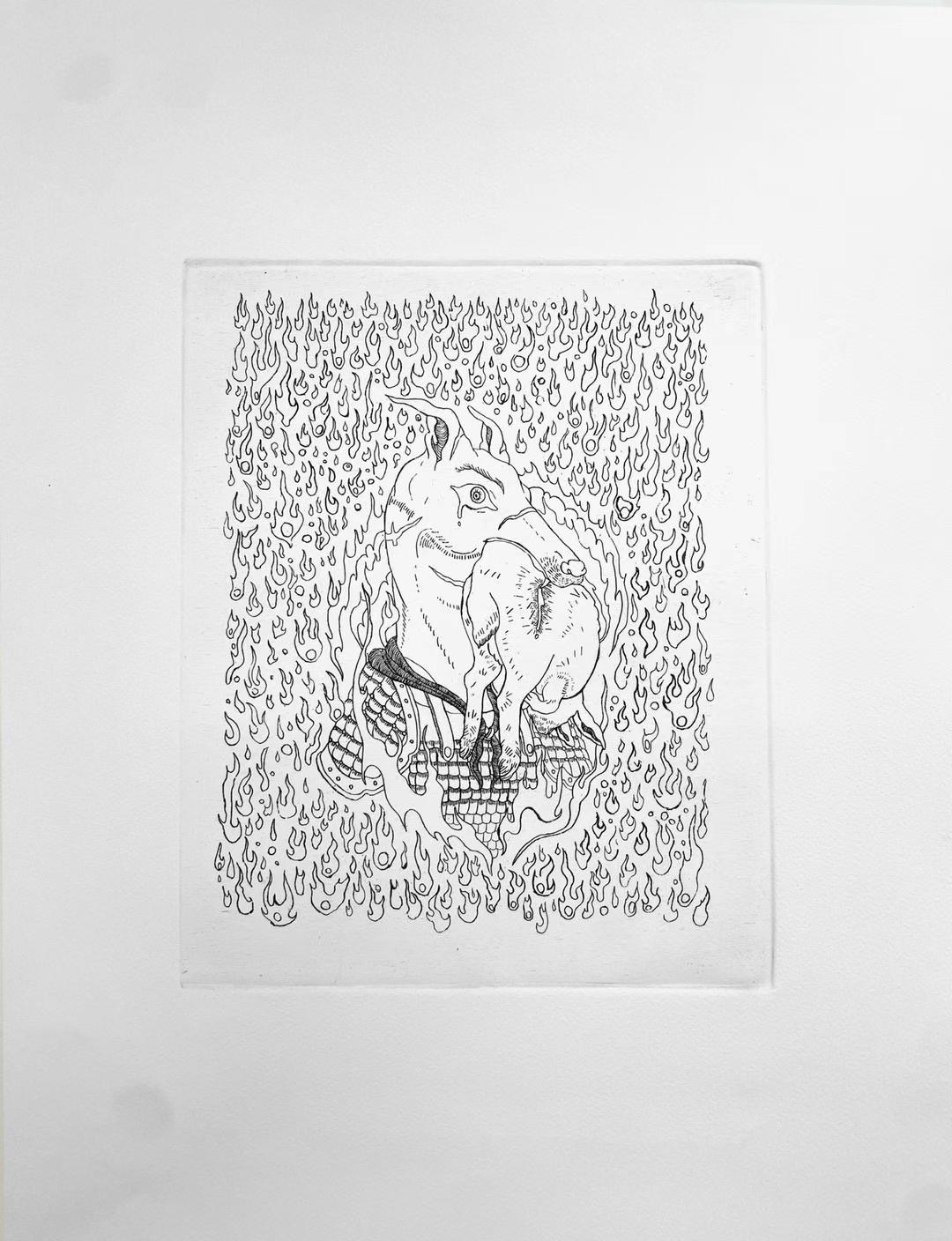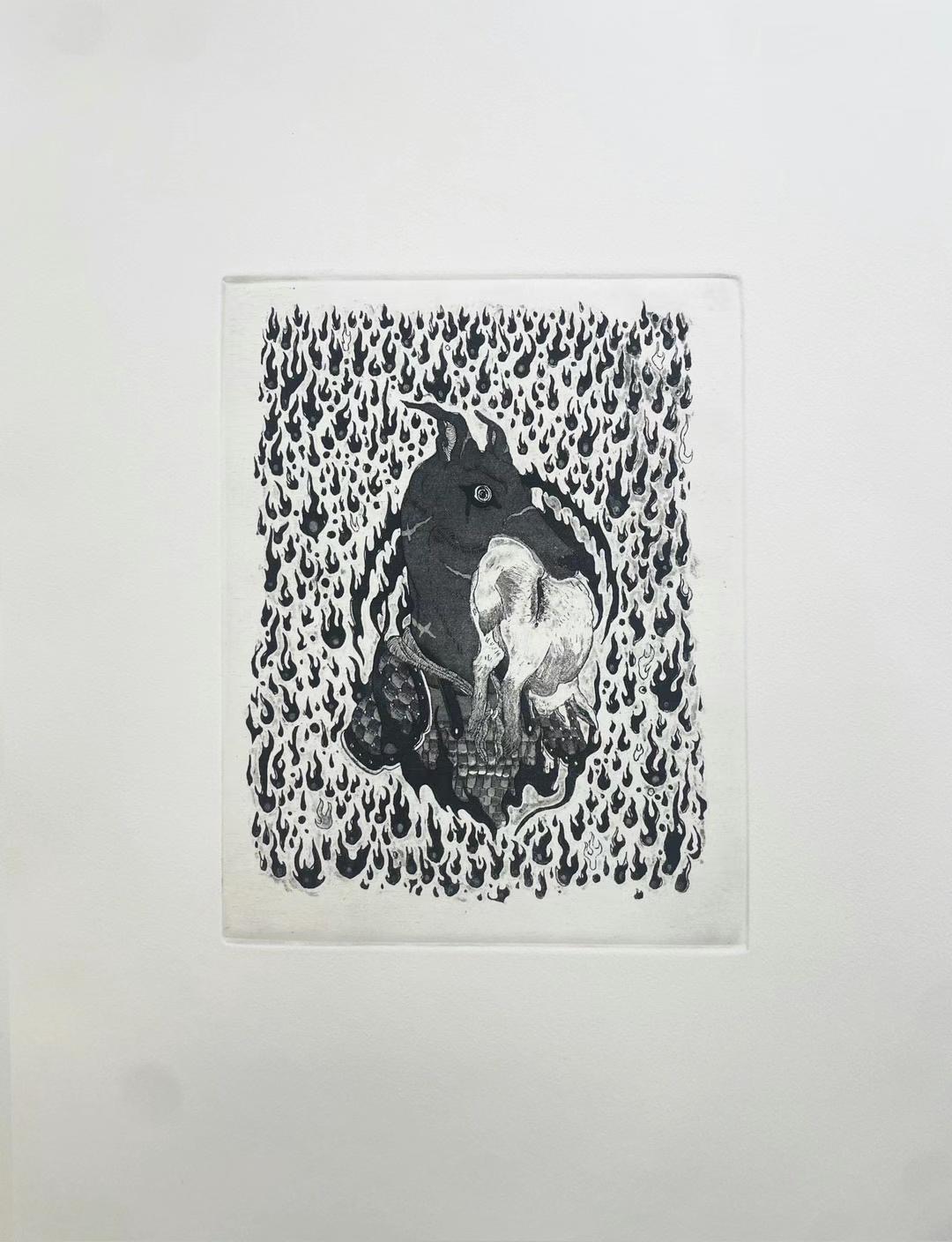 A collection of printmaking using technologies such as etching, chine-colle and silkscreen, featuring a series of Animal Fables