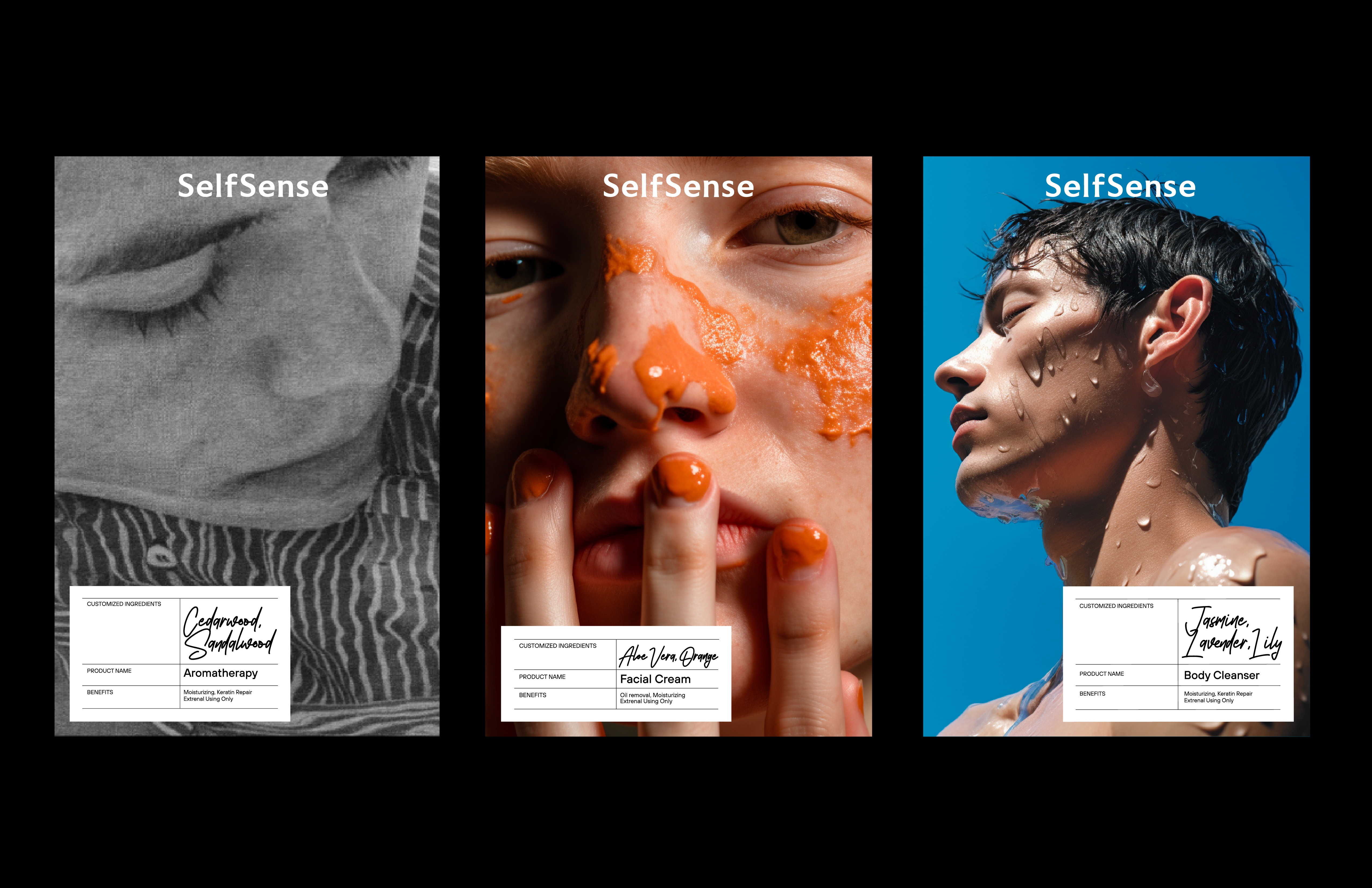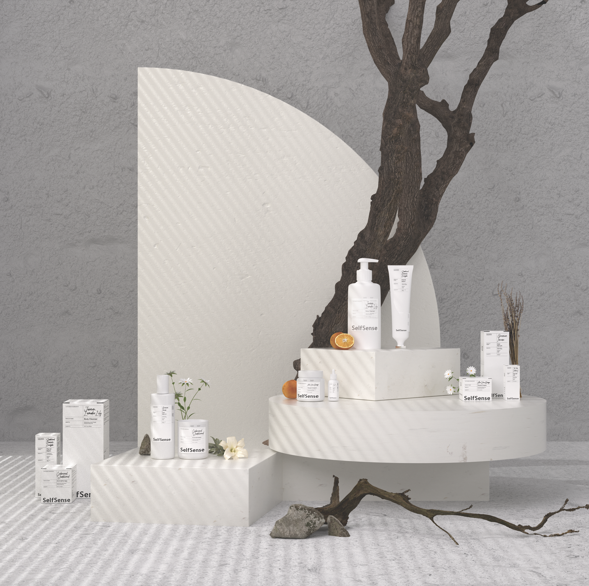SelfSense offers tailored, science-based personal care products with transparent ingredients. SelfSense's packaging's unique "consumer profile" label design provides a personalized brand experience that reflects a rational and sensible approach.