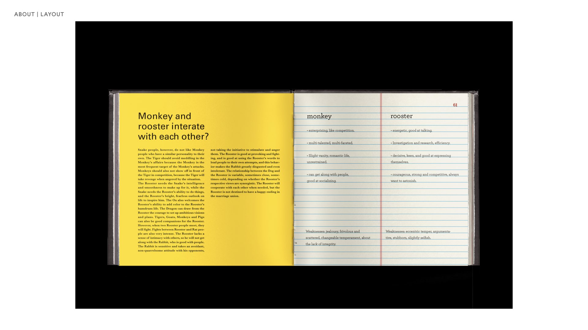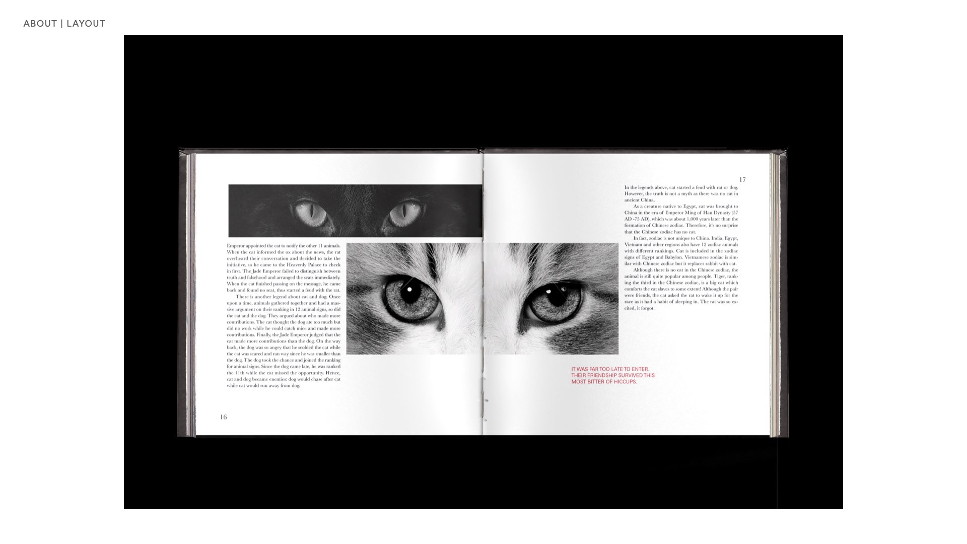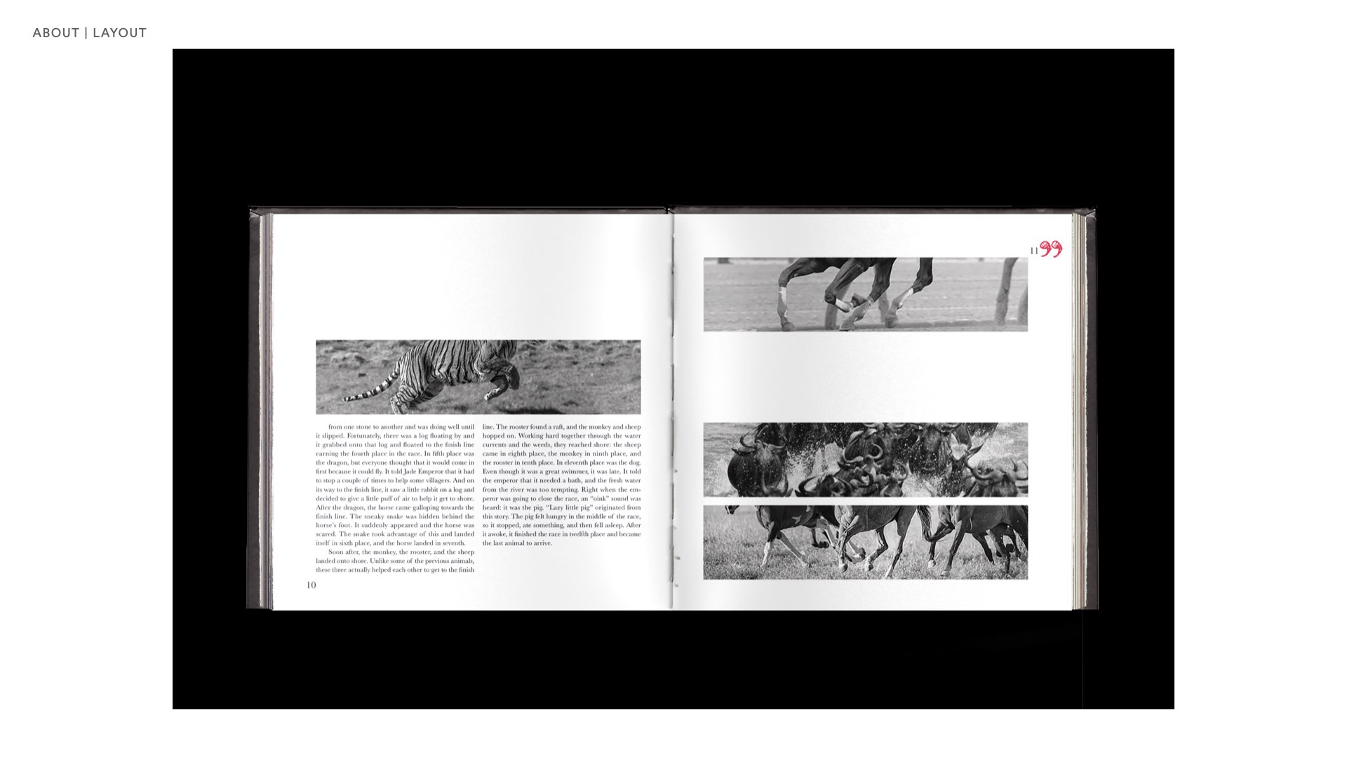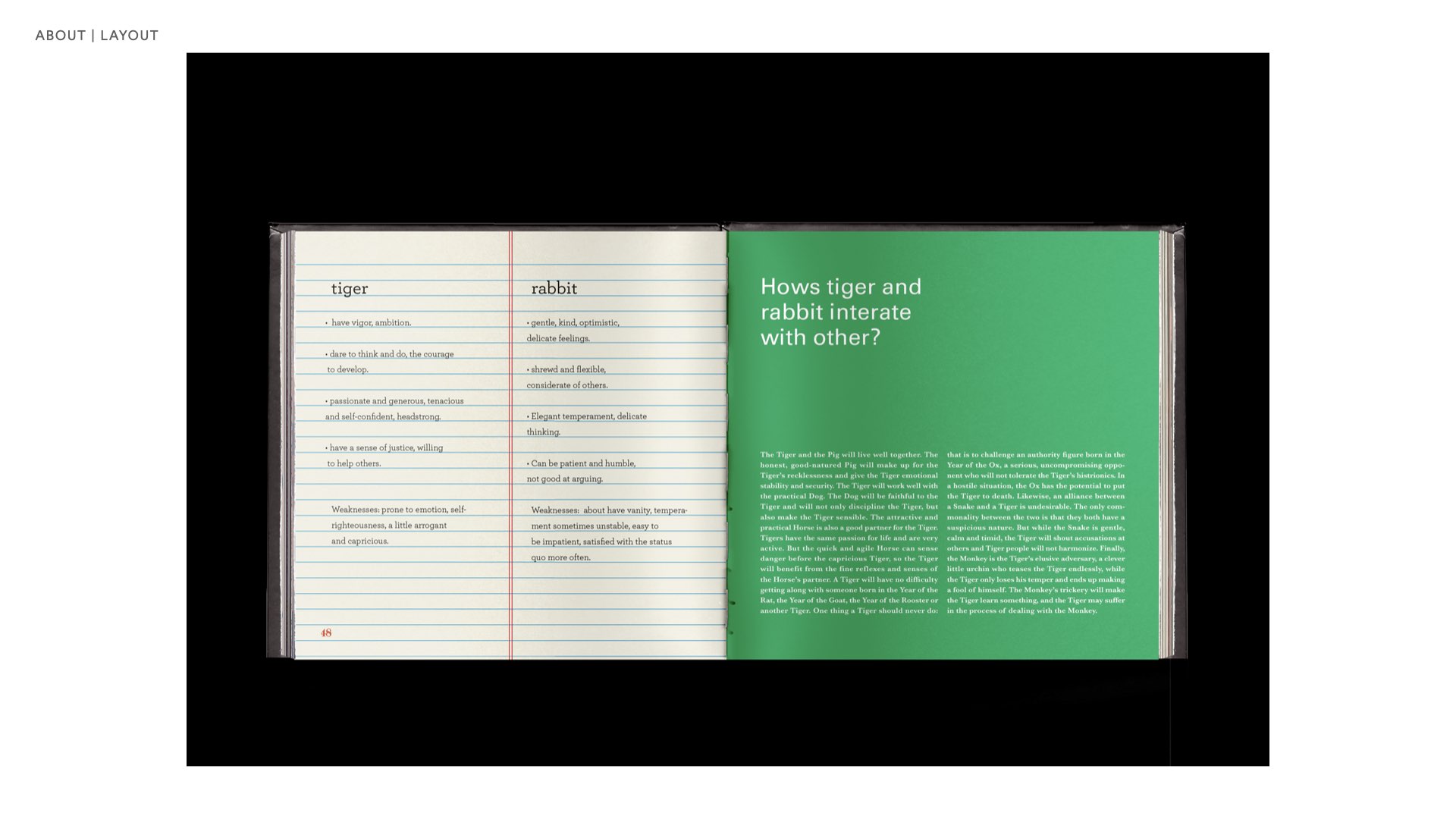 By using different colors and etching pictures, it draws attention through colors. Animal theology and human theology are often related, and the stories are told through the pictures and text presented. Learned a lot about book production, including the making of book covers, the content of the inside pages, and printing.