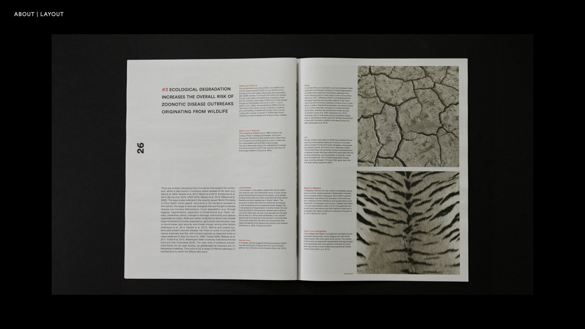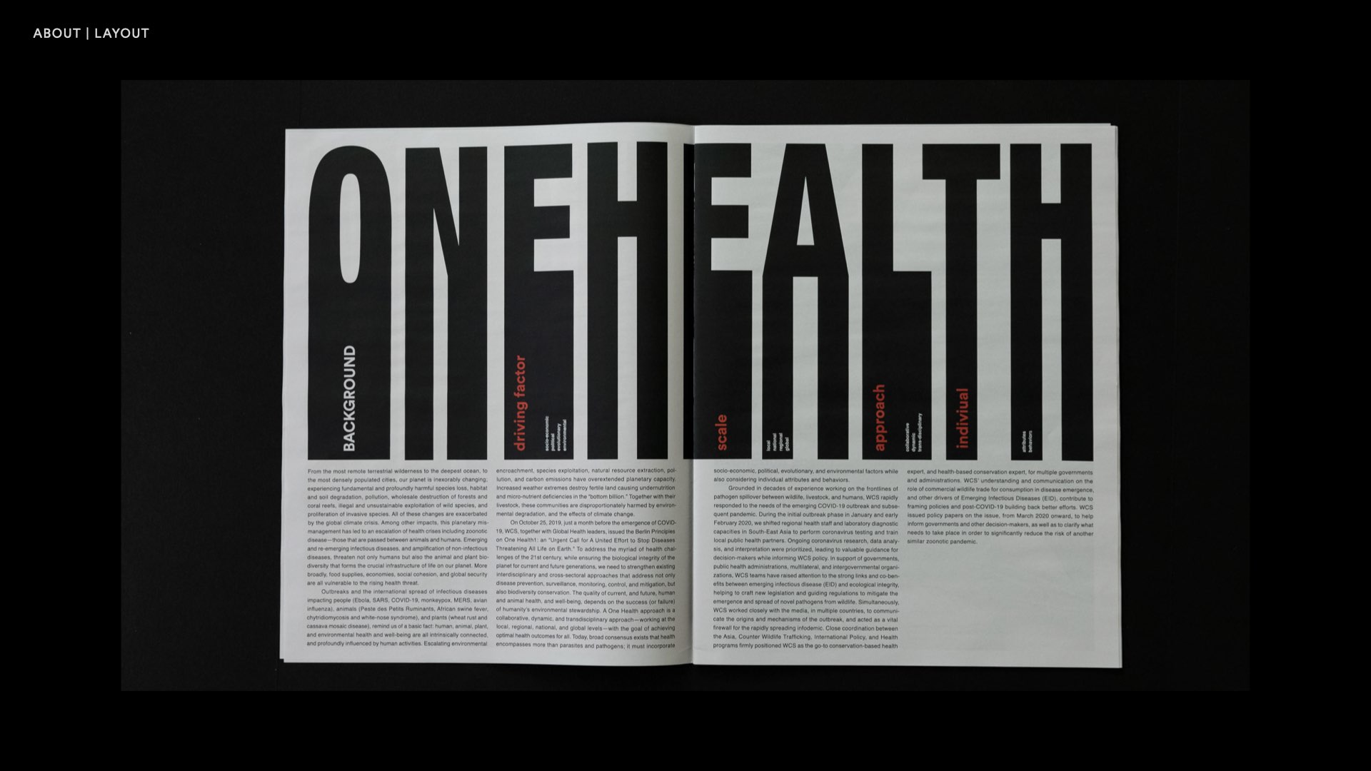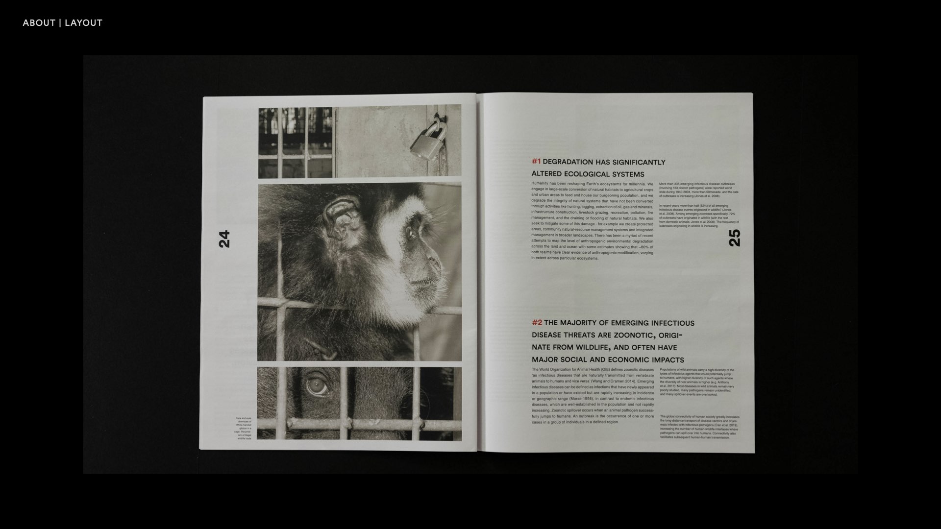 This work is a small magazine, with a message to remind people of the need to protect animals. I used different colors in pictures and fonts to remind readers of the different aspects of the relationship between humans and animals, hoping that they will understand the coexistence.