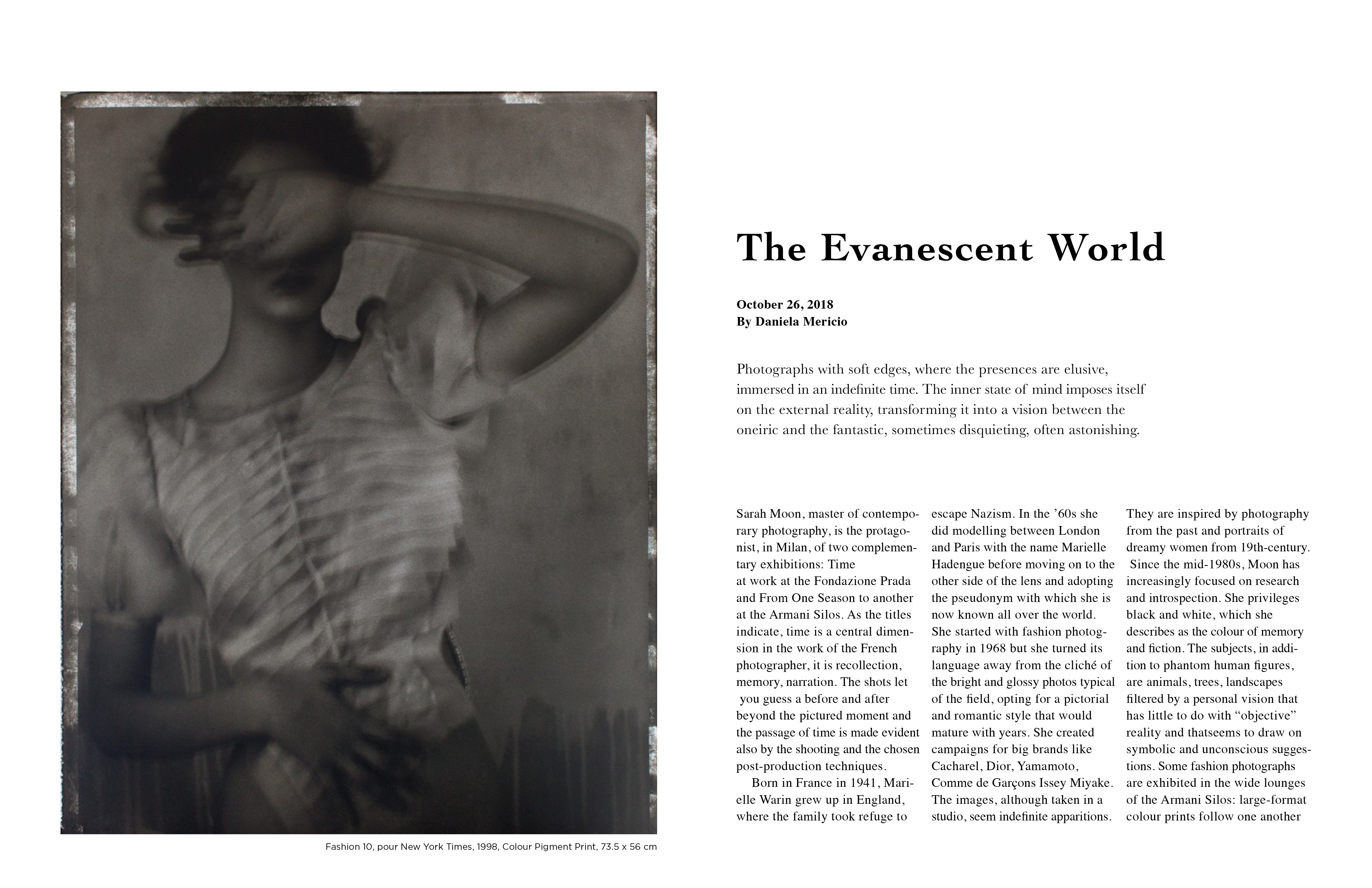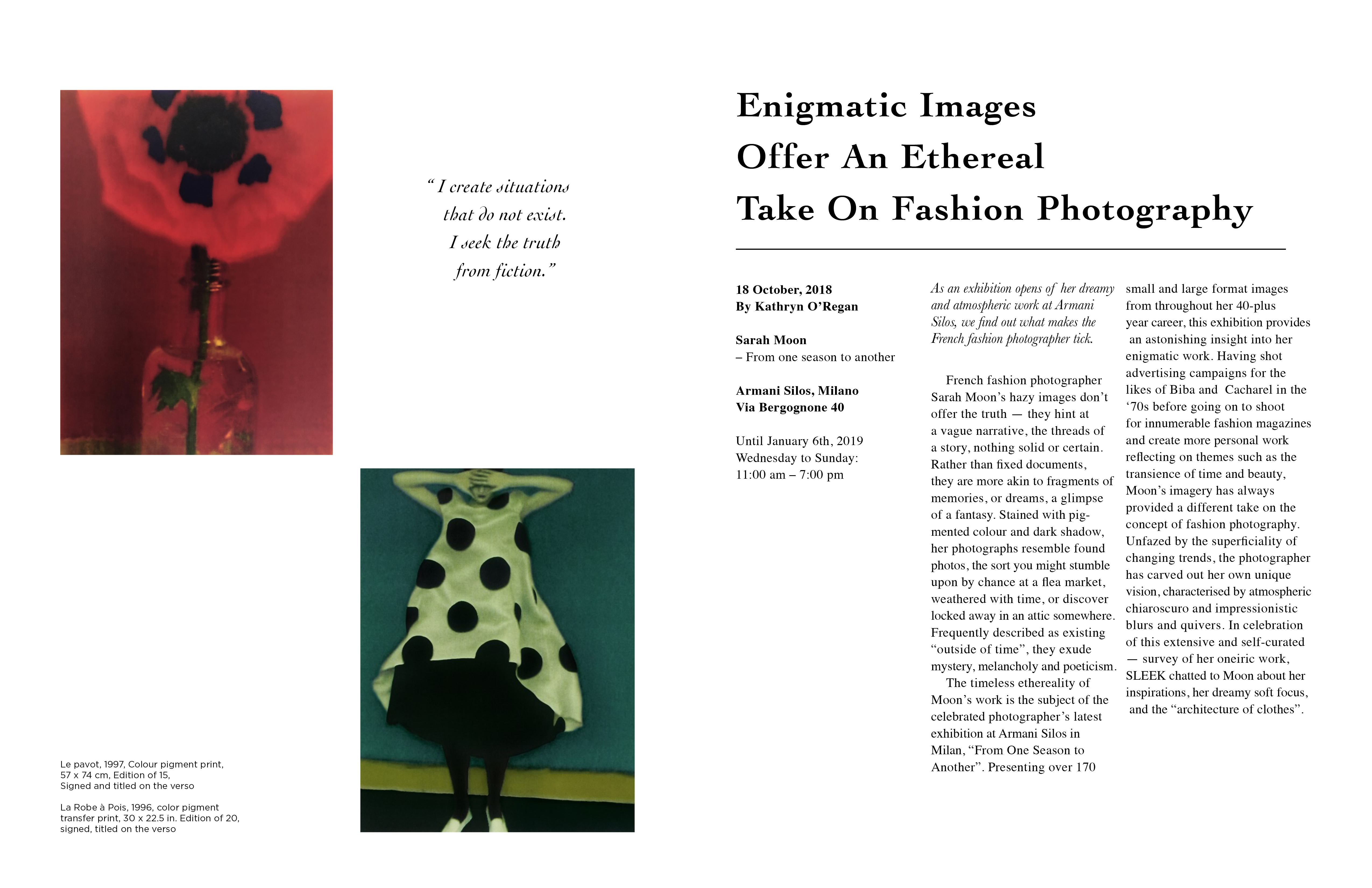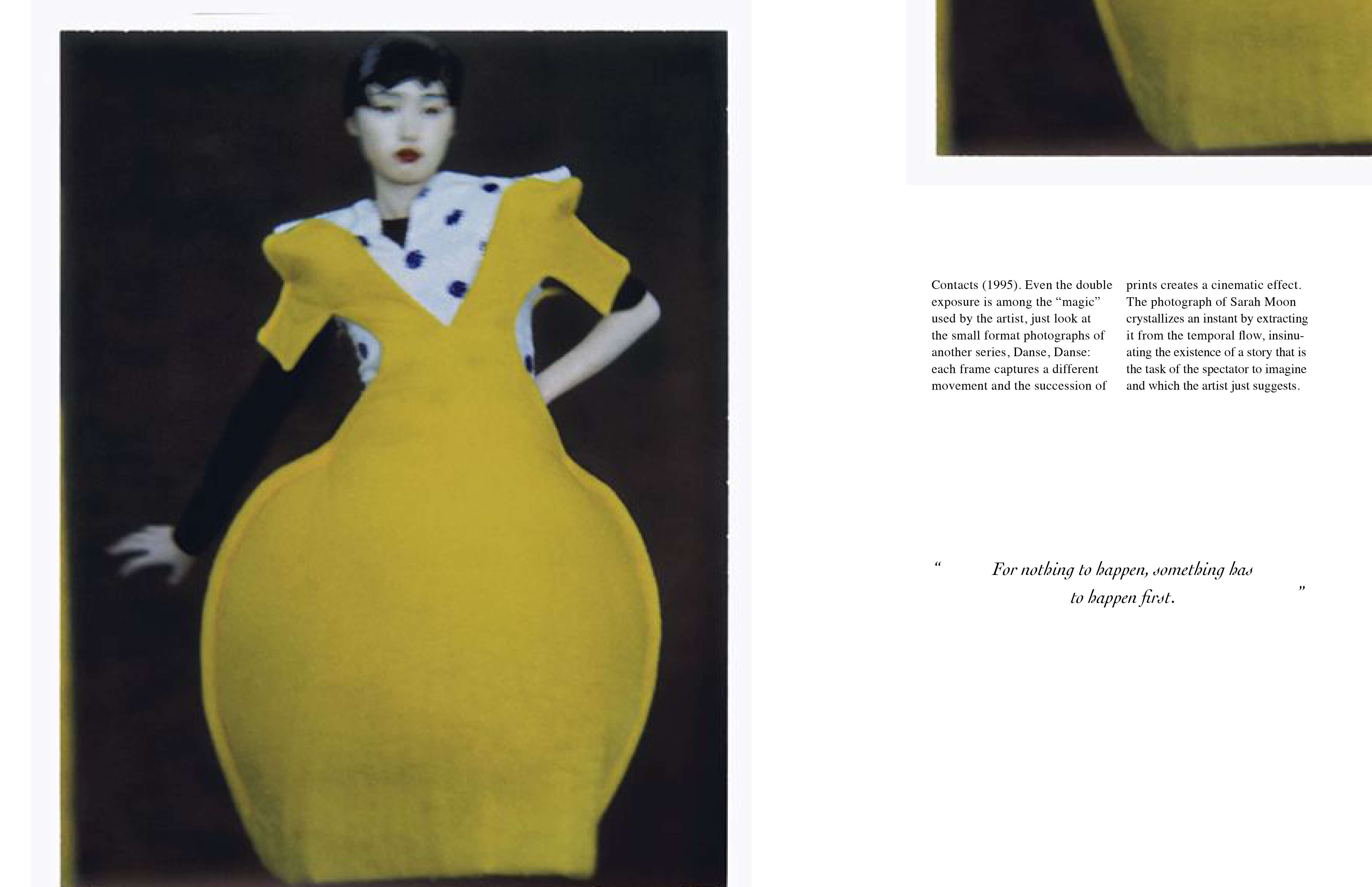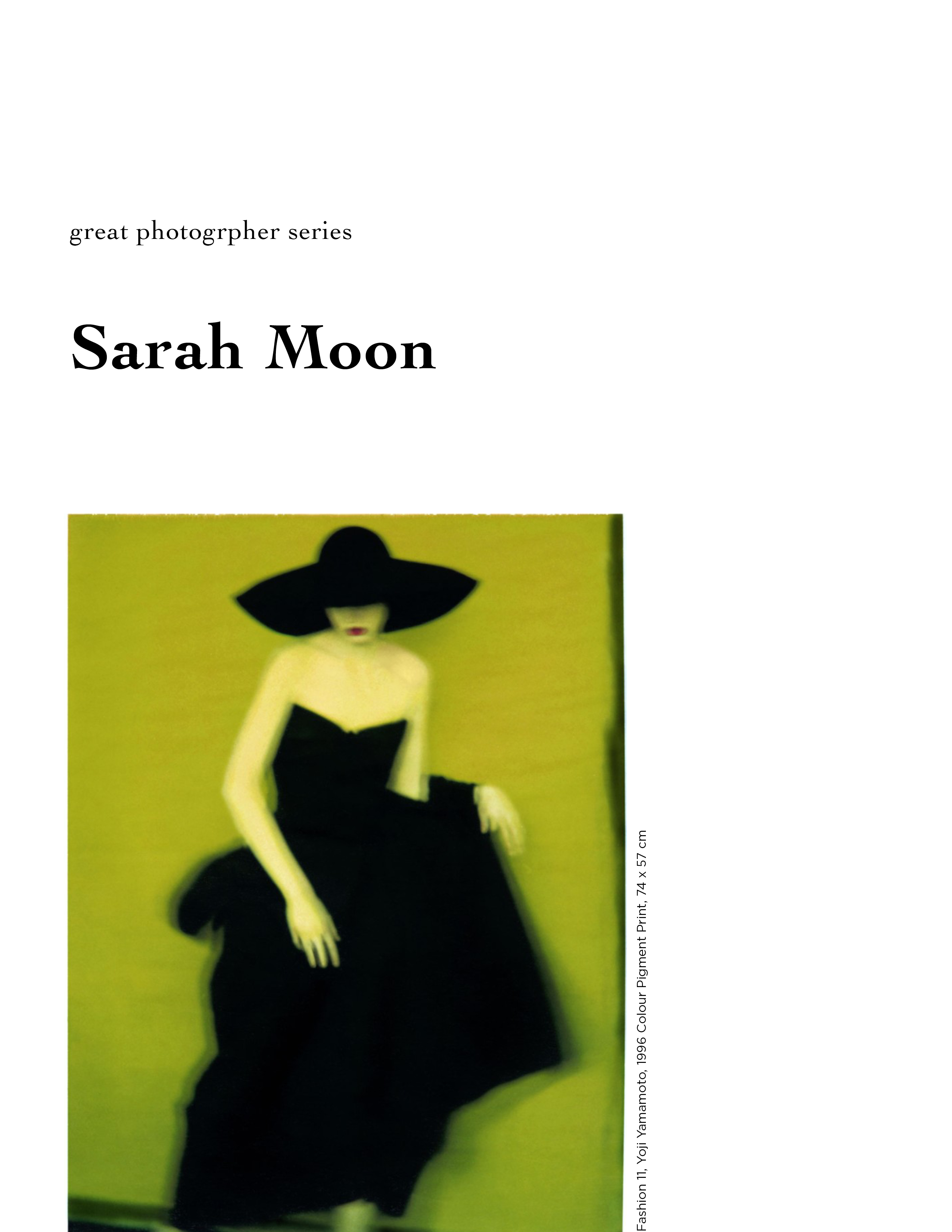 This project is a collection of photographers doing things. The photographer I chose is Sarah Moon, a very dreamy photographer. I chose to leave a lot of white space to accentuate the color of his work.