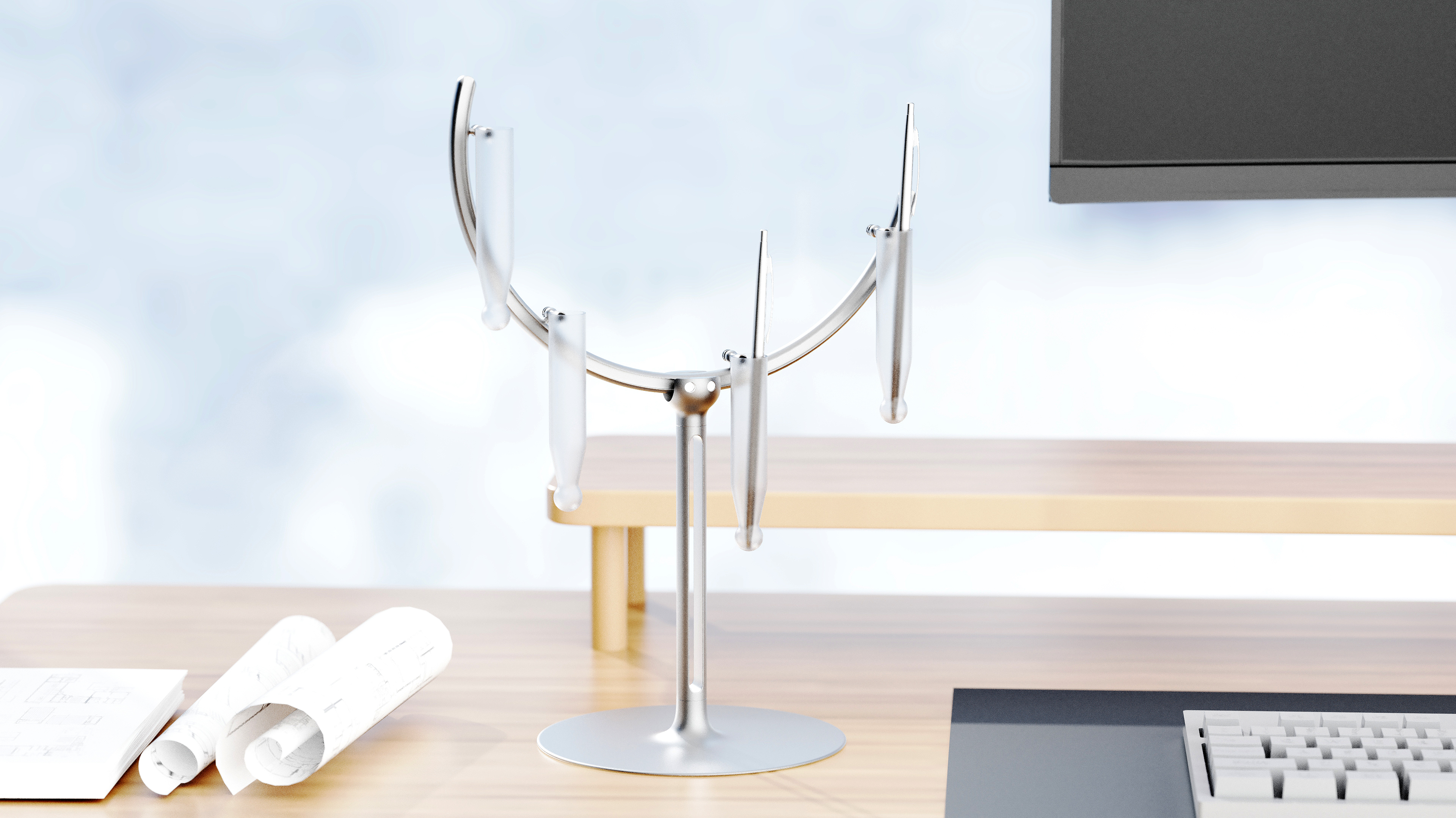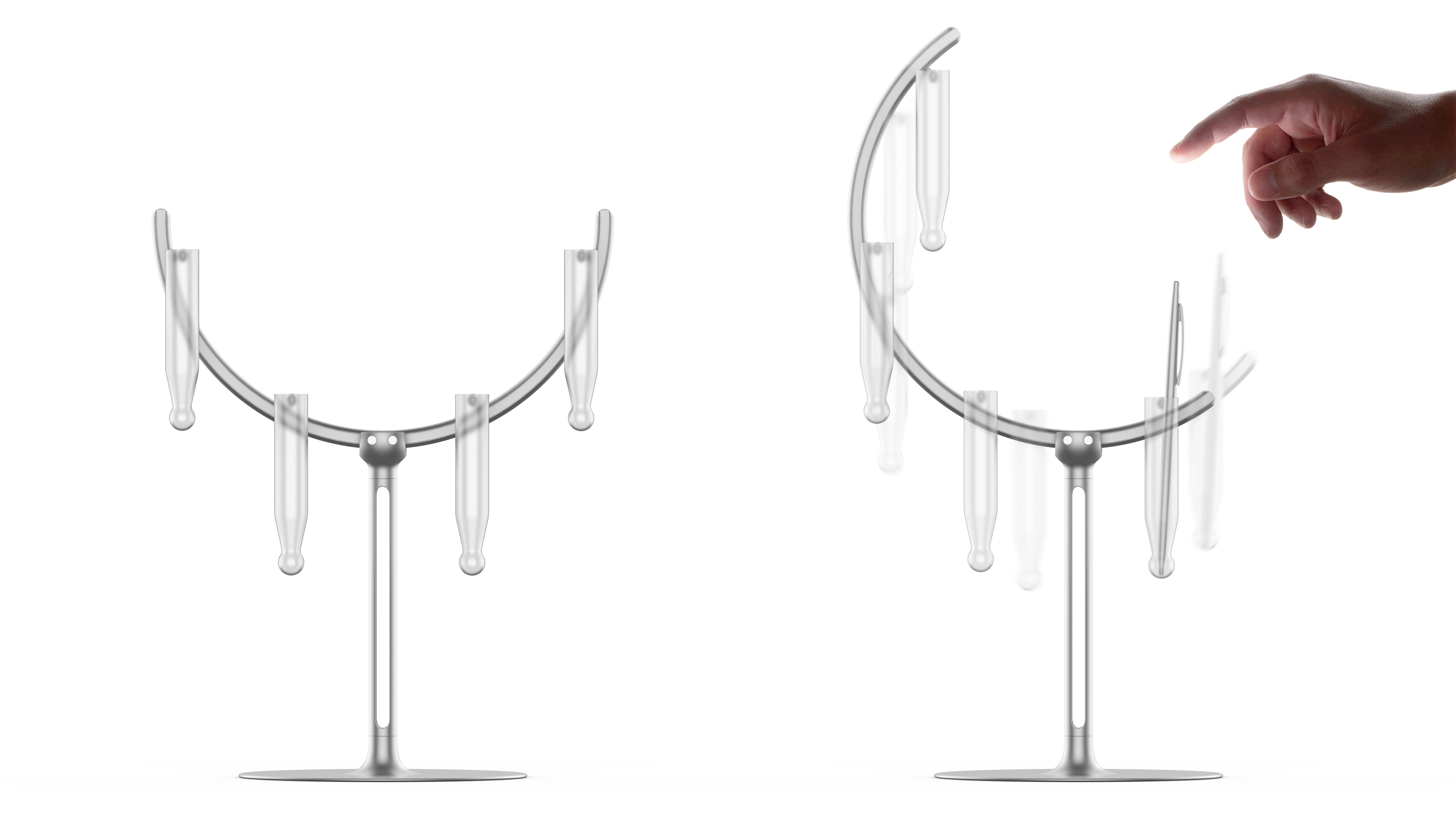 Dynamic Balance is an interactive pen holder/display. It redefines the concept of balance art product. Traditional balance products become boring over time due to limited interaction. In contrast, the Dynamic Balance allows users to define their own balance. The Wing moves with different pens in various slots, offering beauty, elegance, and fun. It serves as a decoration that enhances moods and provides unique experiences and visuals for each user.