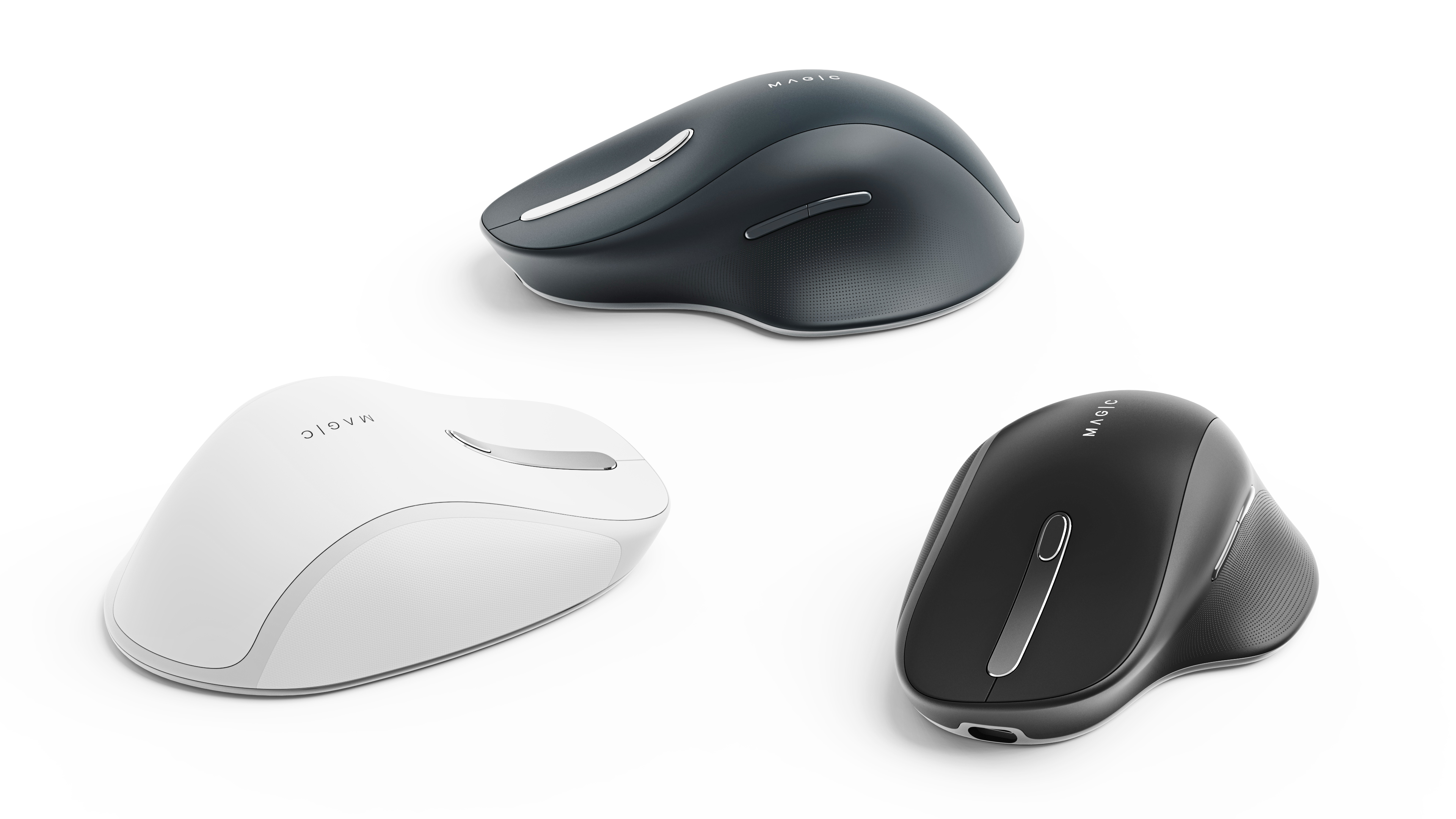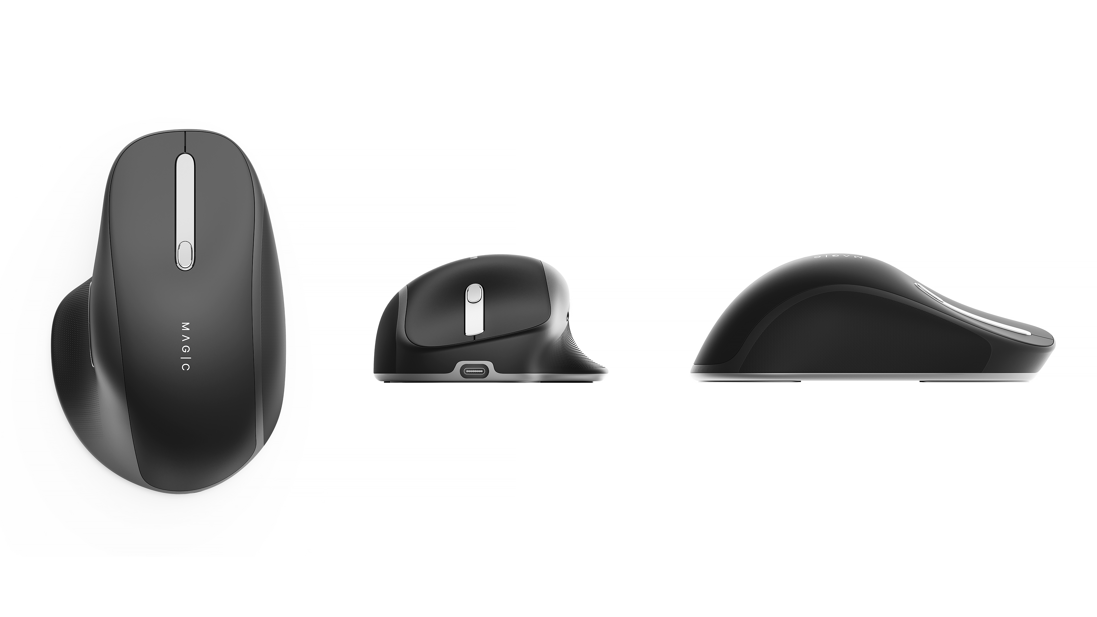 Magician Pro is an ergonomic mouse that addresses mouse scrolling motion finger hyperextension issue. The innovative ascending surface design reduces the degree index finger scrolls (only 165°), the haptic motor delivers the precise tactile feedback of scrolling and provides more layers of interaction.