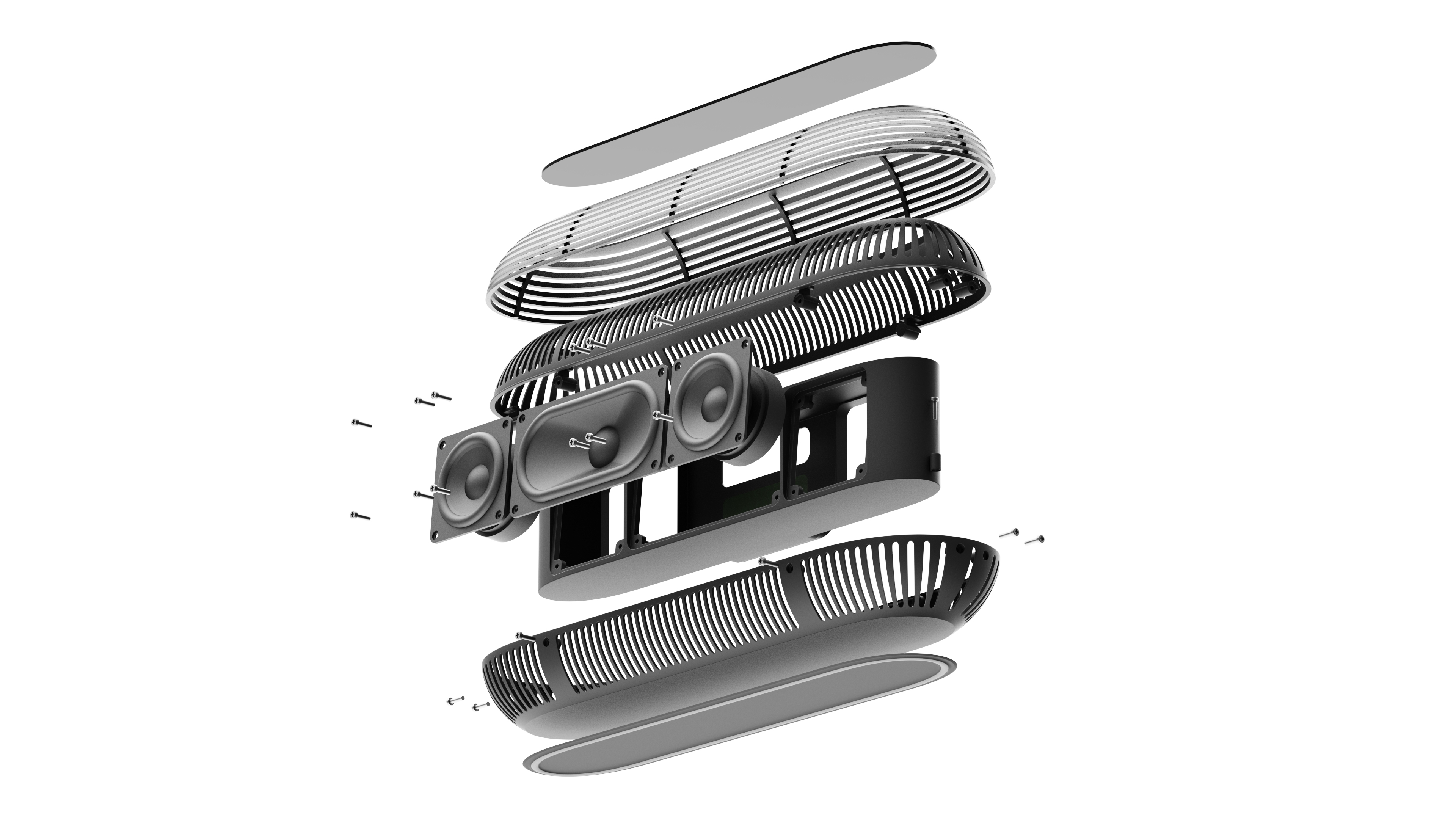 Session Stone is a family of sound bars. It serves beyond merely providing an outstanding acoustic experience, decorating your house, room, and desk with its beautiful soft form. Attractive patterns and furniture-like CMF options seamlessly flow into your living spaces. The project is pushed to be as much manufacturable, assemble prototypes are developed during the process.