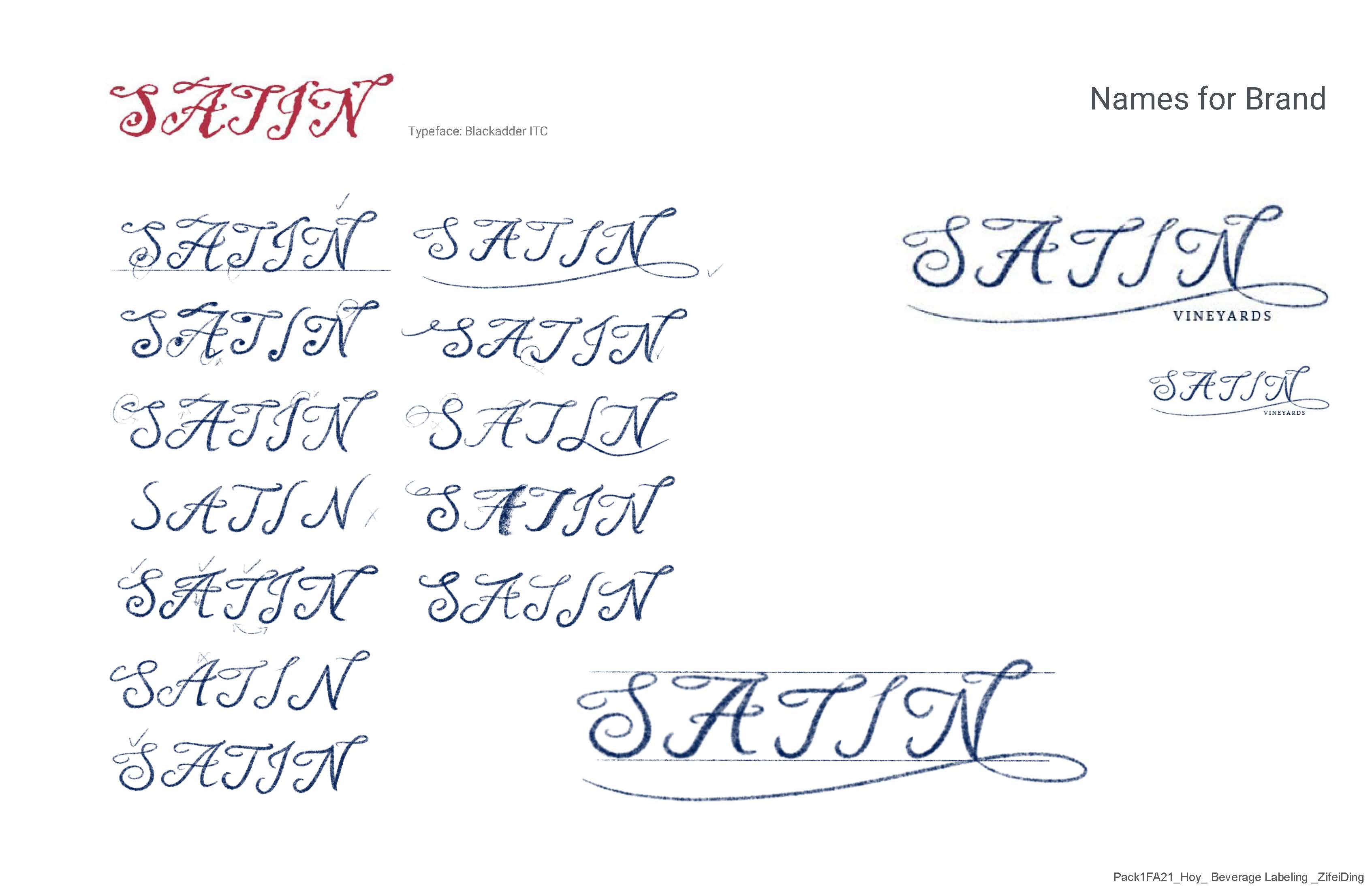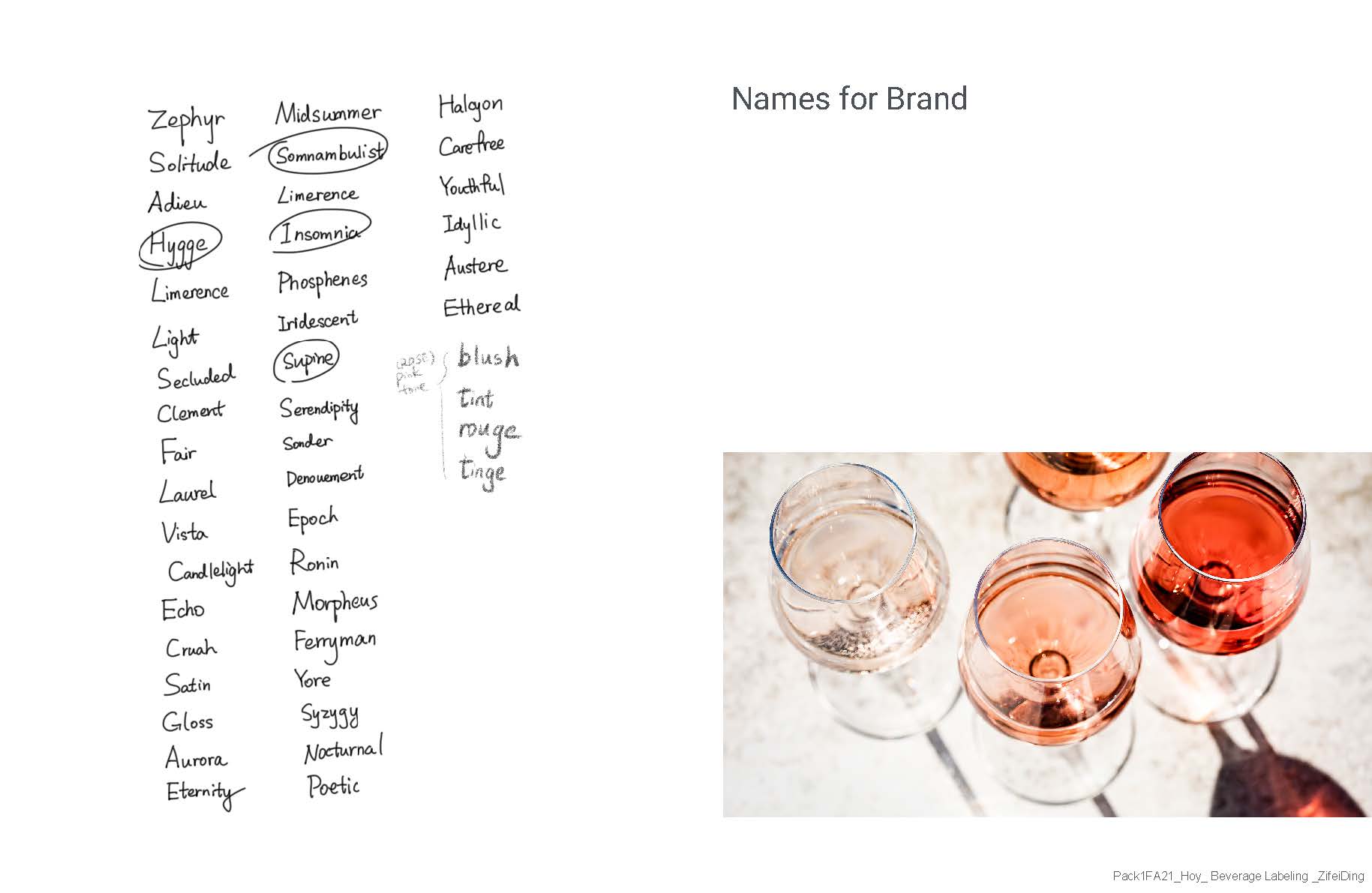 I think my biggest takeaway from this project was the thought process of the different aspects to consider when choosing a brand name. I have had choices that I really liked, but had to pass on that option because I couldn't get past the negative connotations of the words. I had to choose between different names and think about which option was more appropriate and better expressed my design theme.