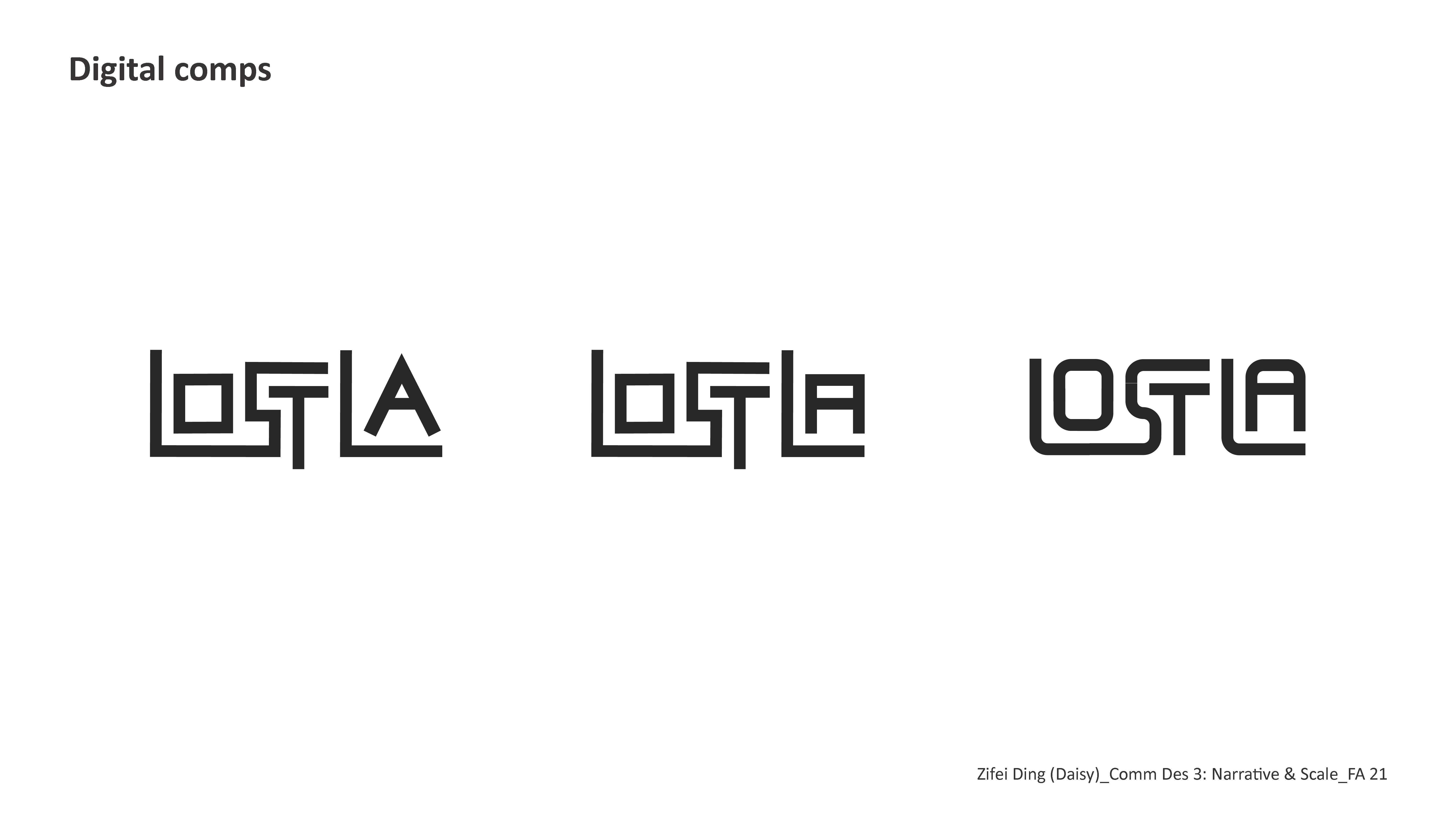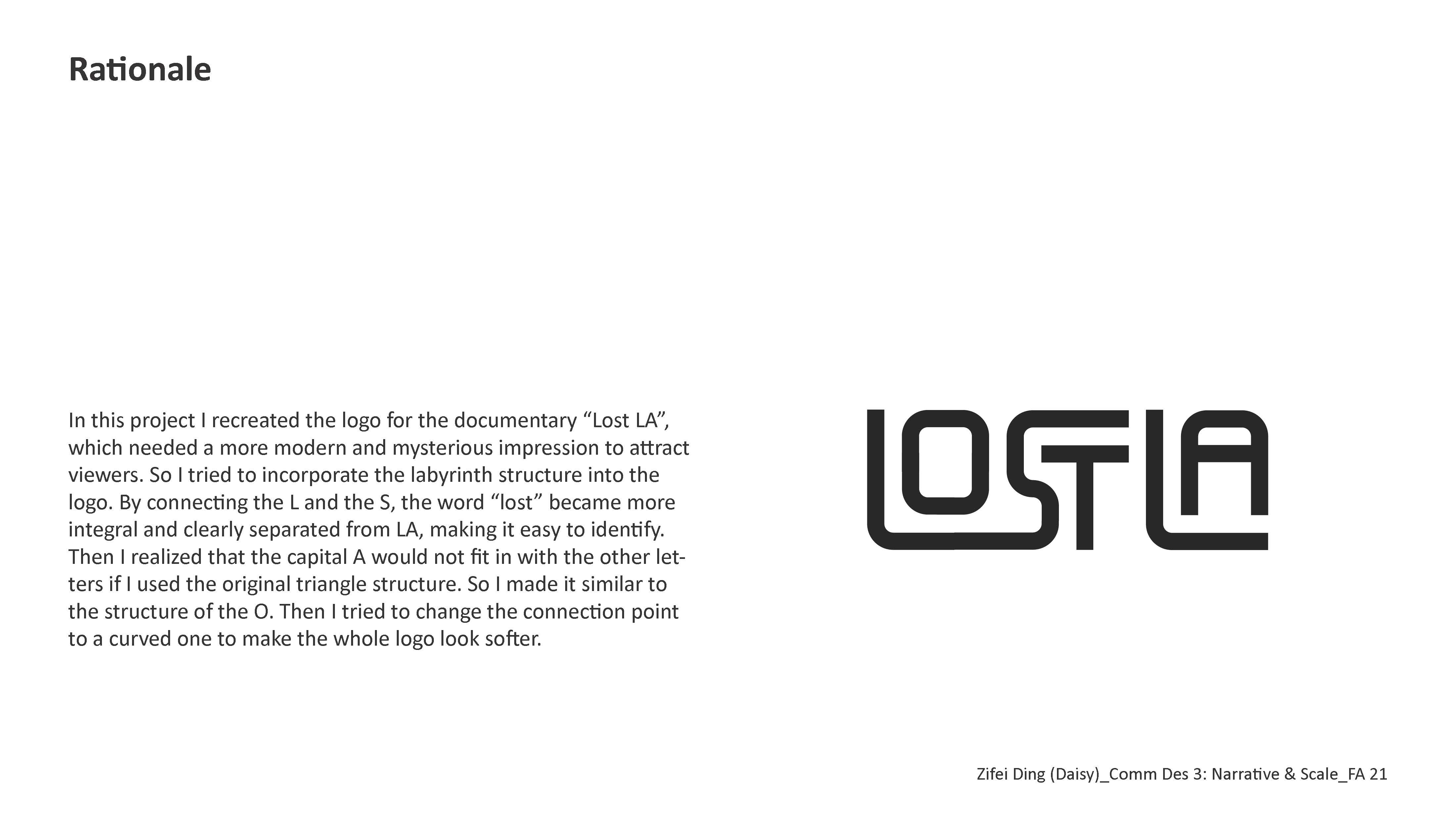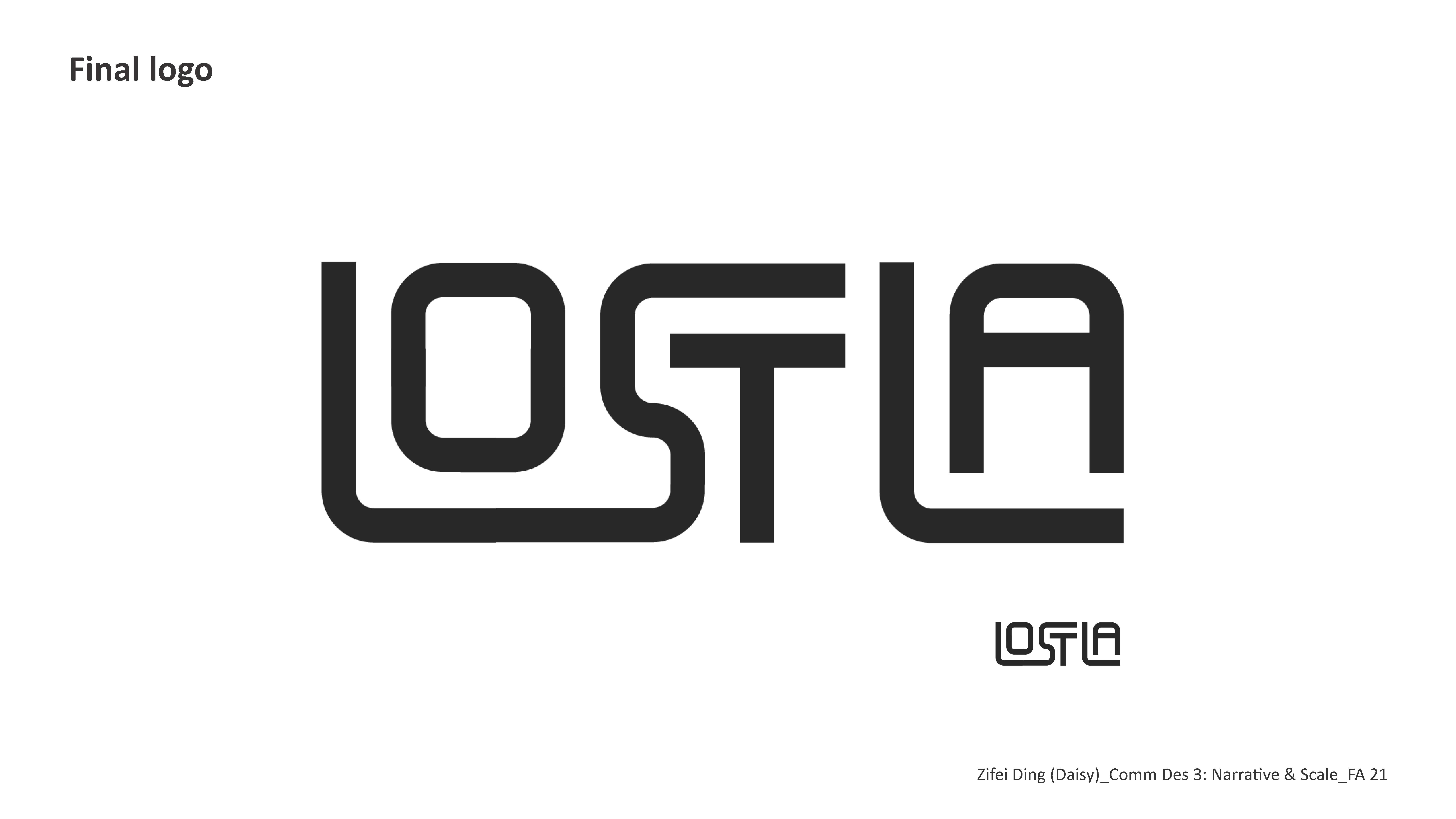 I tried to incorporate the labyrinth structure into the logo. By connecting the L and the S, the word “lost” became more integral and clearly separated from LA, making it easy to identify. Then I tried to change the connection point to a curved one to make the whole logo look softer.