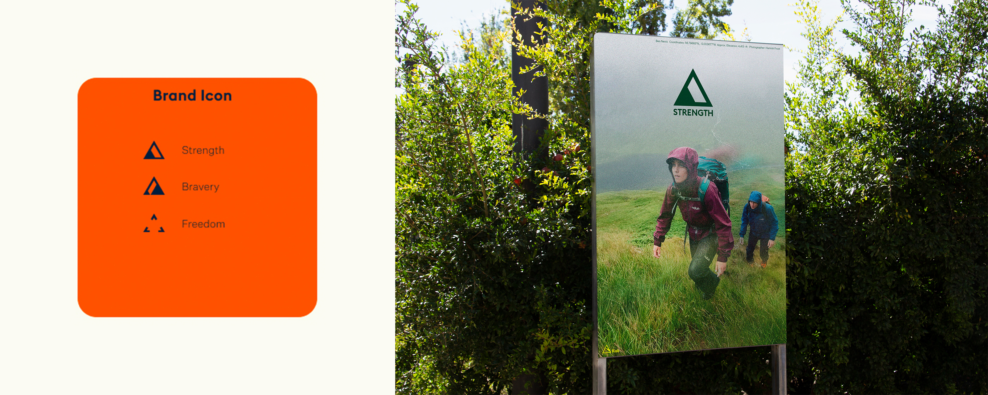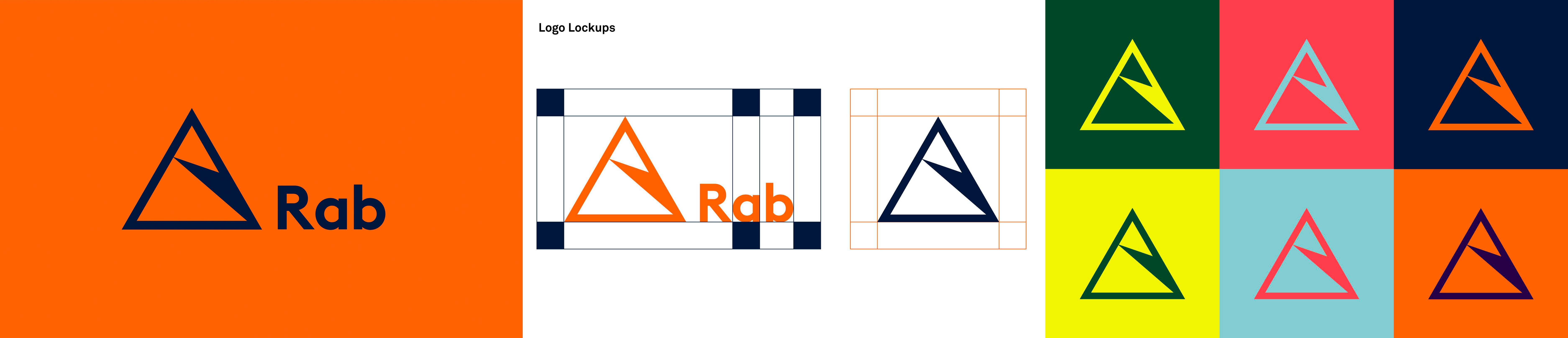 For Rab, the key concepts for the logo and branding are courage, peaks, pioneering spirit, balance, and dependability. I chose the triangle as it is the most stable and strongest shape. Since Rab's primary products are related to mountaineering, I aimed to incorporate the metaphors of mountain tops and hiking trails into the logo.