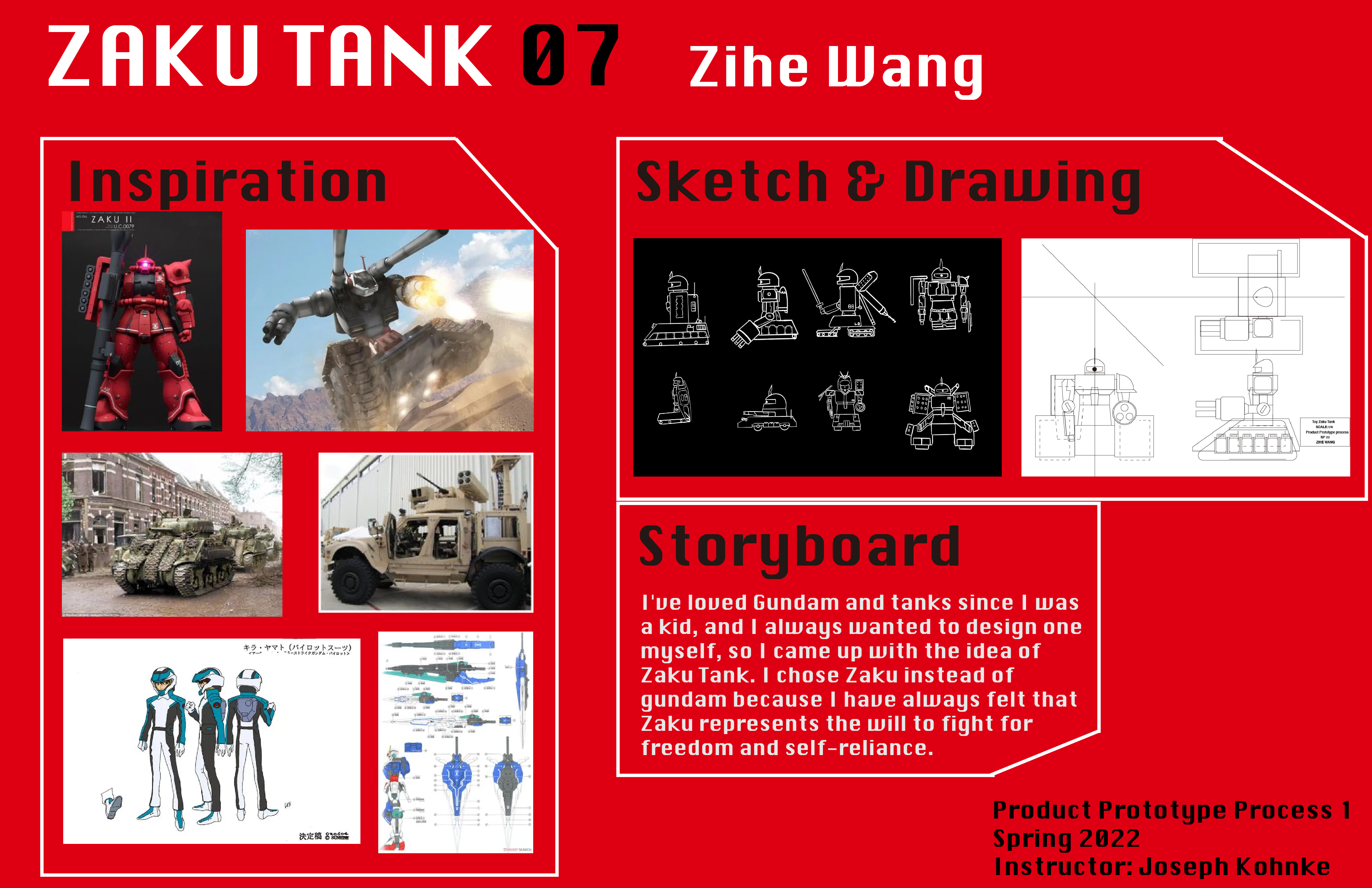 Graduates Select DepartmentBrand Design & StrategyCreative DirectionEntertainment DesignFilmFine ArtFurniture, Lighting and FixturesGraduate ArtGraduate FilmGraduate Graphic DesignGraduate Interaction DesignGraduate Spatial Experience DesignGraphic DesignIllustrationIndustrial DesignInteraction DesignMedia Design PracticesPhotography and ImagingProduct DesignSpatial Experience DesignTransportation DesignTransportation Systems and Design Back to Projects Zihe Wang BS in Interaction Design — Interaction Design Gundam Toy Car Design This is from my Product Prototype Process 1 Class. During this project, I designed a toy car combine with the idea of gundam. Image Image Image
