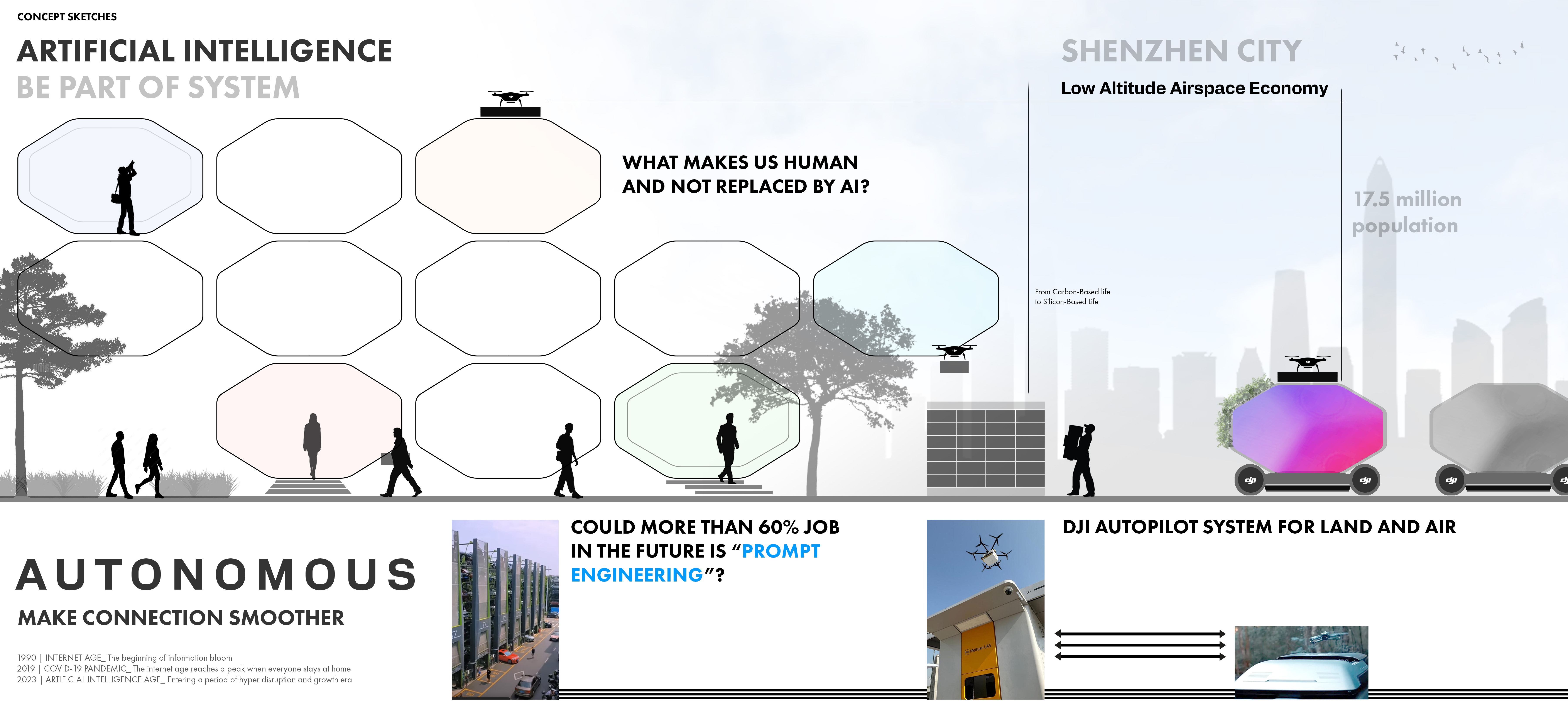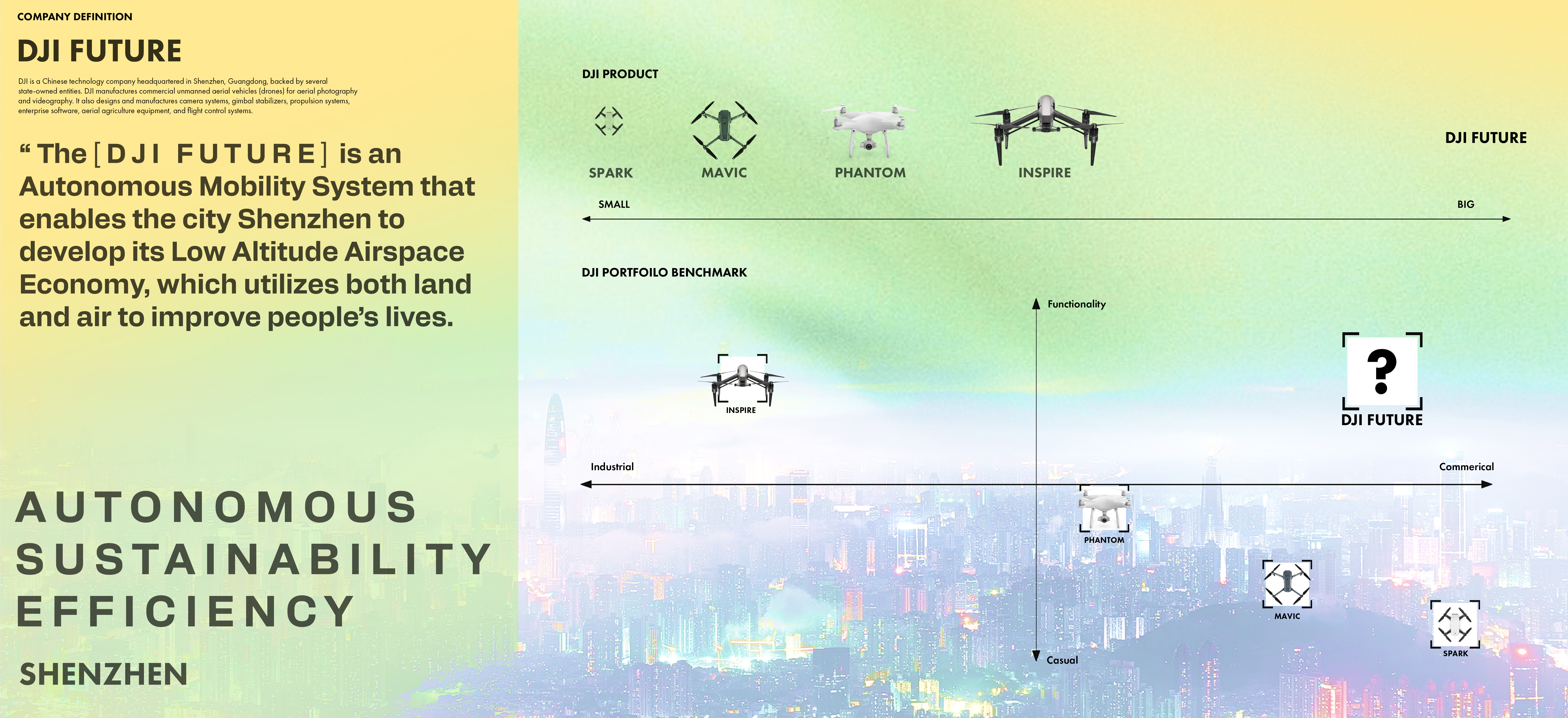 The DJI FUTURE is an Autonomous Mobility System that enables the city Shenzhen to develop its Low Altitude Airspace Economy, which utilizes both land and air to improve people’s lives.