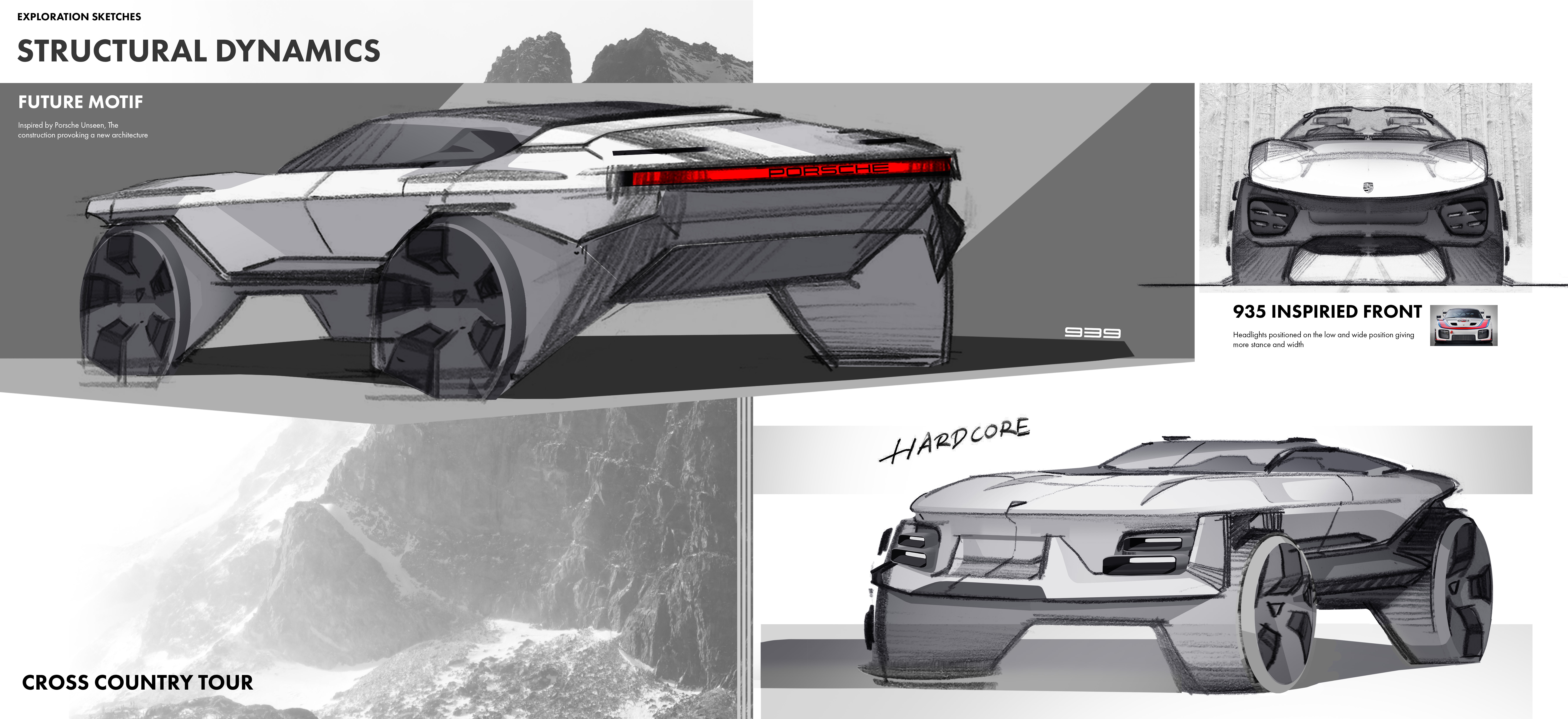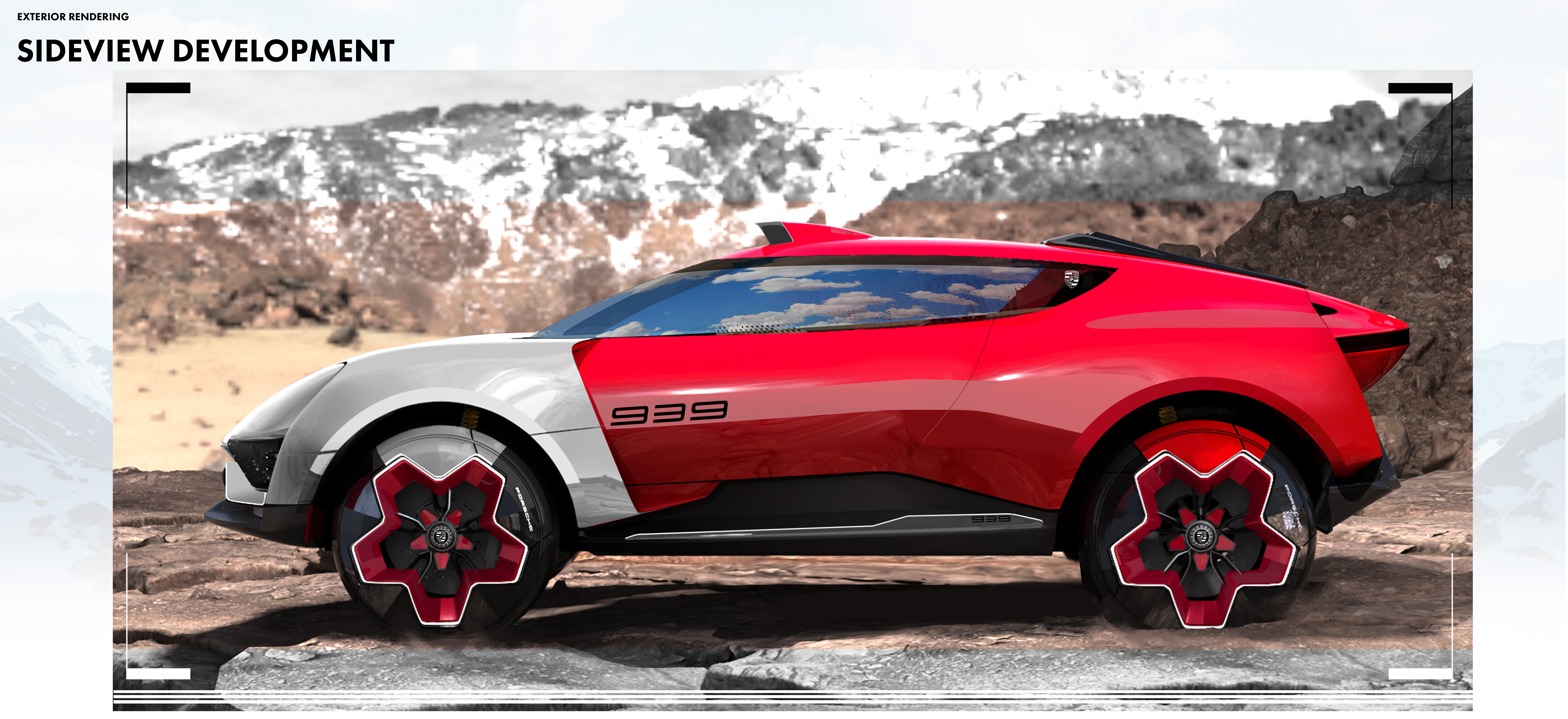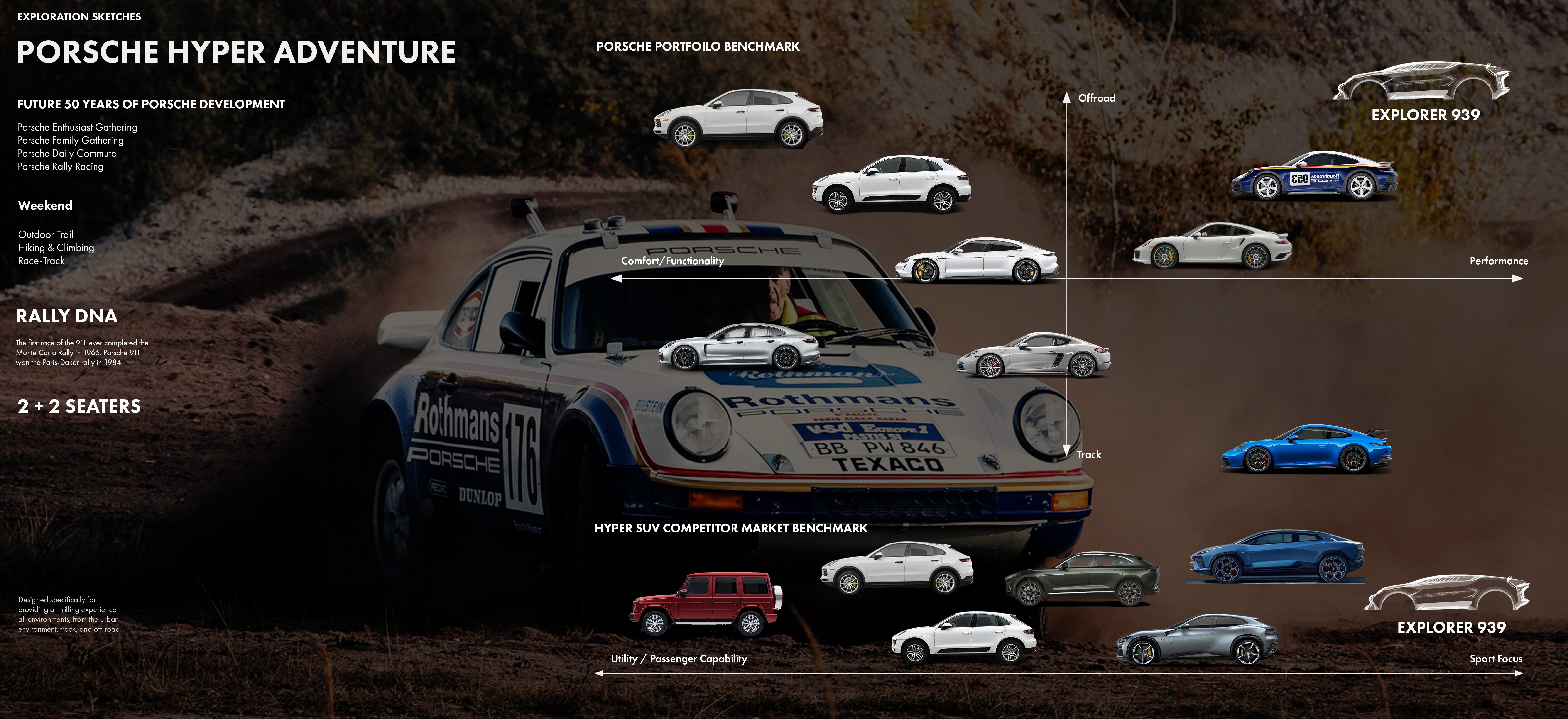 The [939-PHA] is a 2+2 Hyper Adventure Vehicle designed specifically for explorers, providing a thrilling experience for both off-road and racetrack. The project aims to breathe new life into the legacy of the 959 and 919. ”